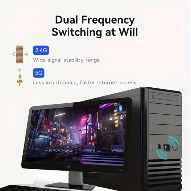 1300m Wireless USB WiFi Adapter, No Driver Required, Compatible with Windows 10, High-Speed Internet Receiver for Home & Office Use