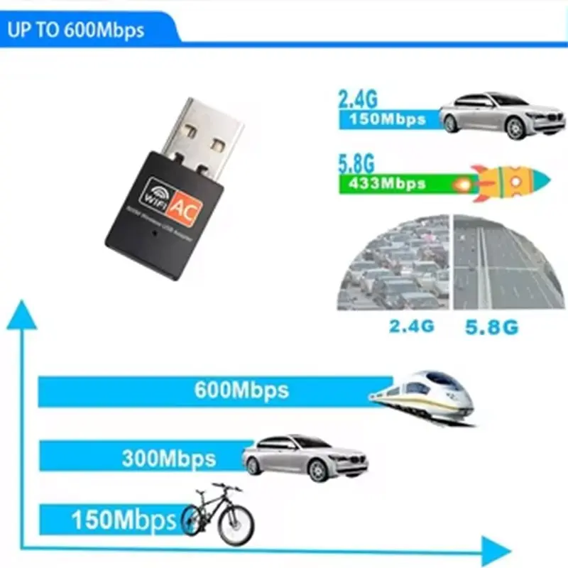 600mbps USB WiFi Wireless Adapter, Dual Band 5.8ghz/2.4GHz Receiver, Compatible with Desktop/laptop, Win Xp/vista/7/8/10/11, MAC Os