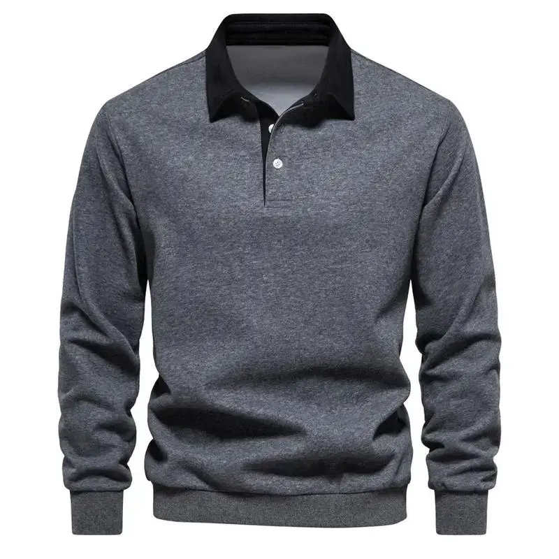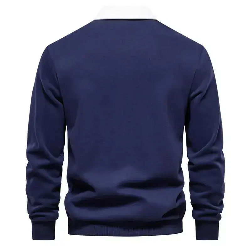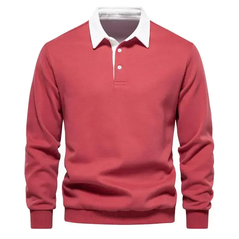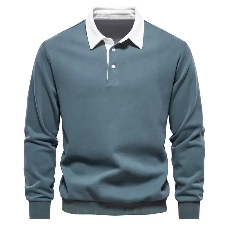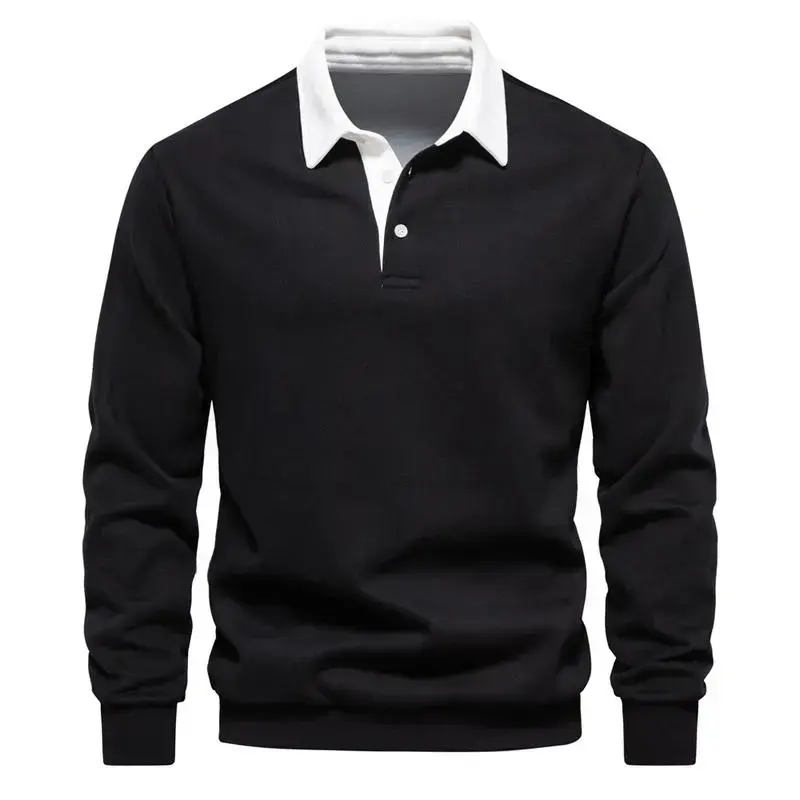 5. Men's Long Sleeve Polo Shirts Slim-fit Cotton Rugby Shirt Basic Color Spliced Designed Sweatshirt