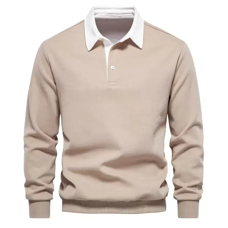 Men's Long Sleeve Polo Shirts Slim-fit Cotton Rugby Shirt Basic Color Spliced Designed Sweatshirt