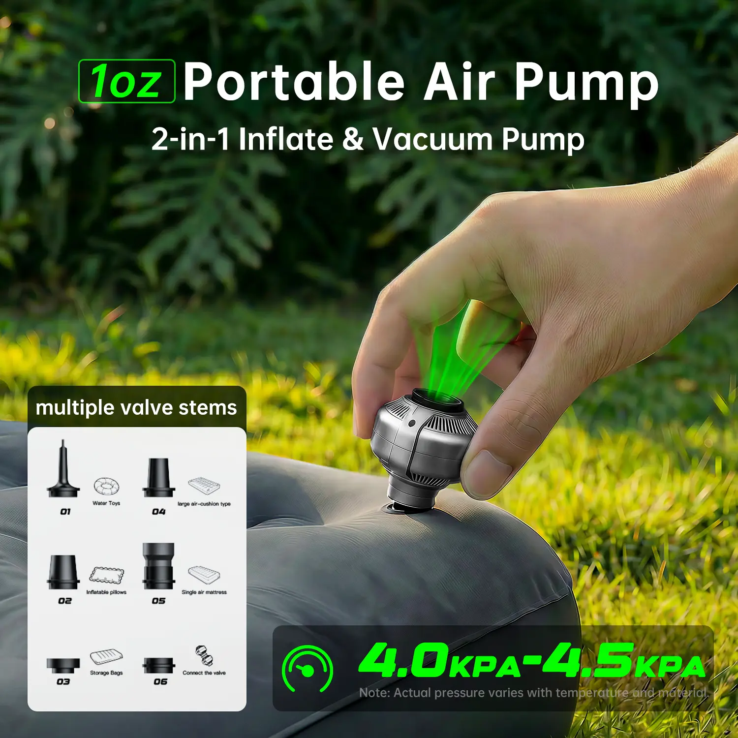 GT-02 Mini Air Pump 30g – Ultra-Light Mini Portable Electric Air Pump, 4-in-1 Inflate & Deflate Mini Vacuum Pump, Mini Inflator for Pool Floats, Air Mattress, Camping & Travel