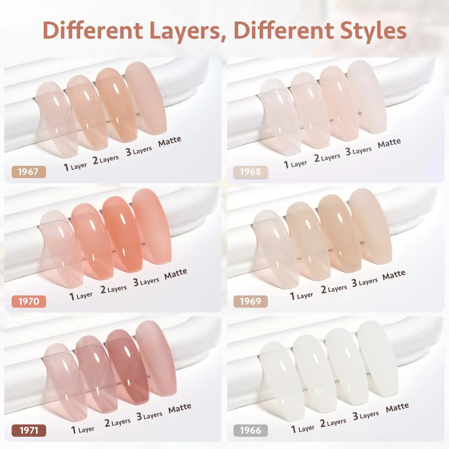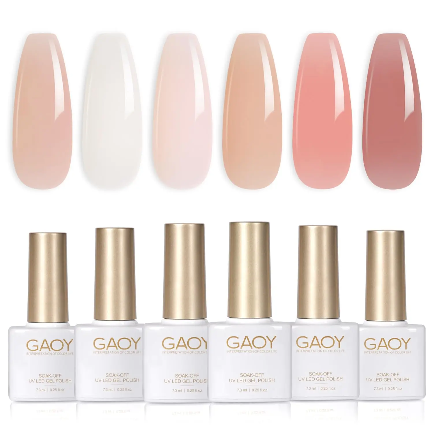 4. GAOY Milky Jelly Nude Gel Nail Polish Set, 6 Transparent Colors Sheer White Pink Soak Off UV Light Cure Gel Polish Kit for Salon and Nail Art DIY at Home