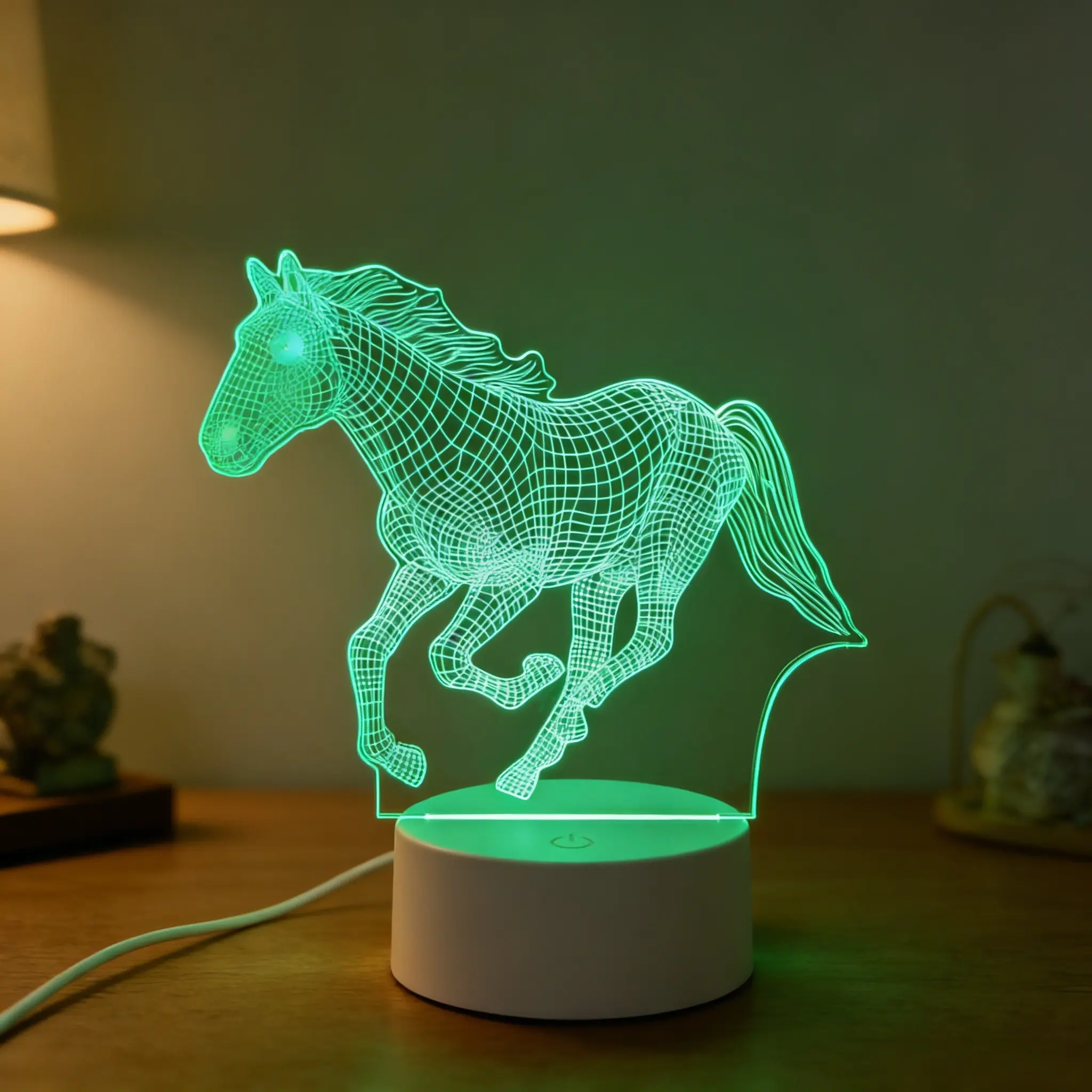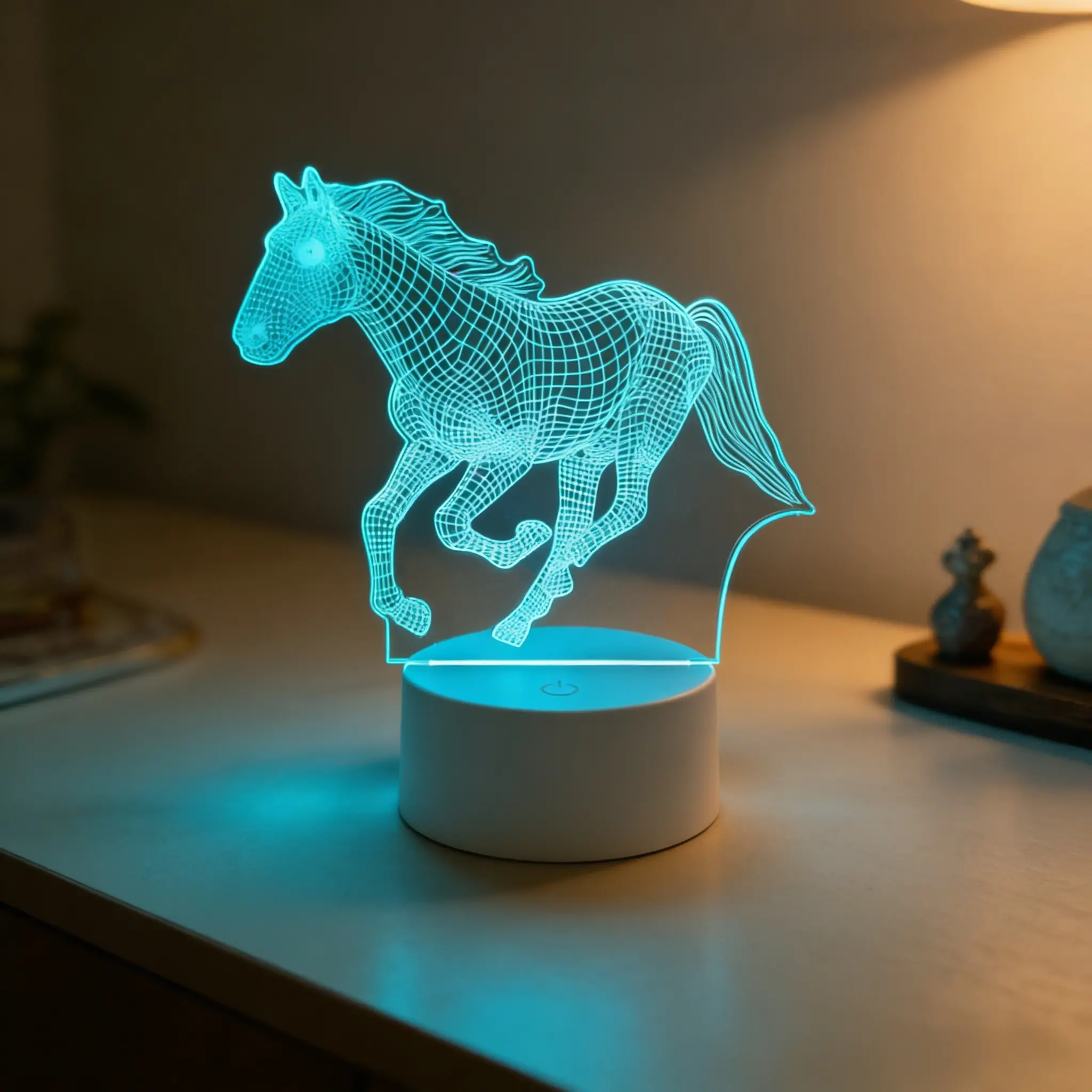 Prestige Horse 3D Night Light, 7 Color Changing Touch Control, USB Powered LED Night Lamp, Equestrian Gift, Desk Decoration