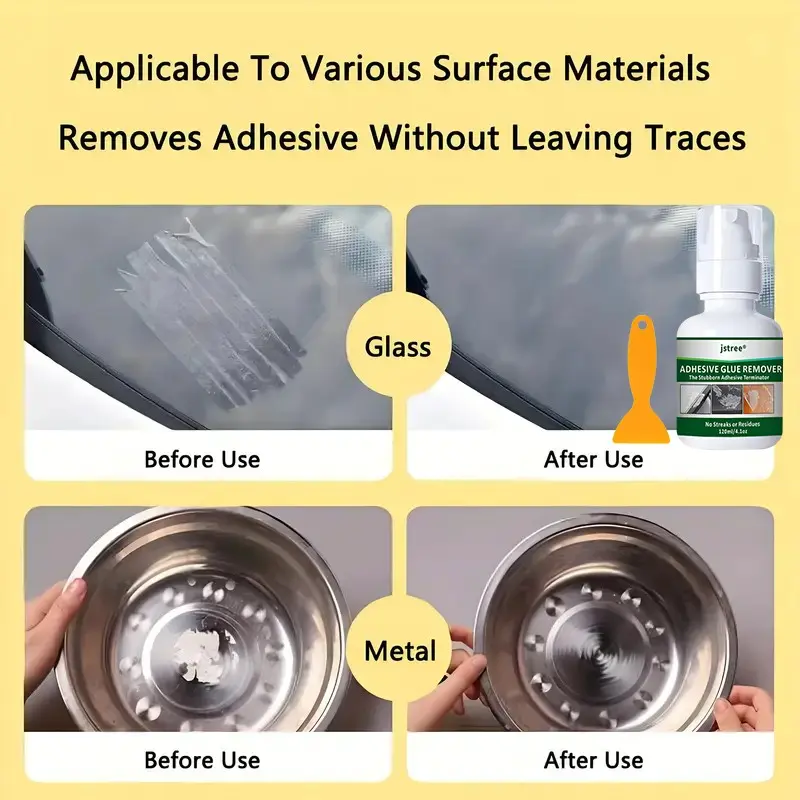 Jstree Powerful Adhesive Remover, Removes Unwanted Stickers & Double-Sided Tape Residue, 120ML Cleaning Solution, Effective De-Glue Agent