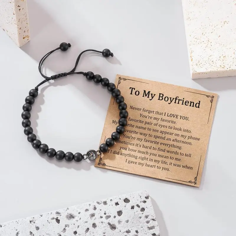 BOYFRIEND GIFTS - It's a great gift for your boyfriend or husband, let him know you love him always and forever, how it's lucky to meet a man like him, and he is your best friend, your soulmate, and everything. Simple bracelet but with full warm power. MATERIALS - Made of 6mm Black Onyx Stone, Since stones are natural materials, stone colors and shapes may vary slightly from the picture, making this beautiful handmade item unique just like you! SIZE - The bracelets come with a sliding knot closure with adjusting from 7'' to 11'', fits over your hand and wrist, waterproof, durable, and comfortable. PERFECT GIFT - When You Bring the bracelet for your boyfriend or husband, It will be a perfect gift for Wedding Anniversary, Birthday, Father's Day, Christmas, New Year's Day, Valentine's Day, Family Gathering, Party And Other Festivals. It will be a great gift.
