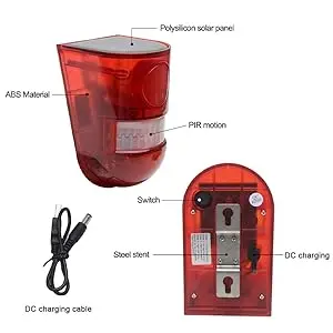 Solar Motion Sensor Alarm Light 129dB Loud Siren with LED Flash IP65 Waterproof Outdoor Security Alarm Solar Powered Warning Light for Home Farm Chicken Coop Yard