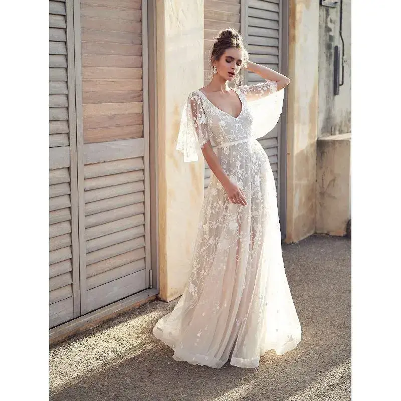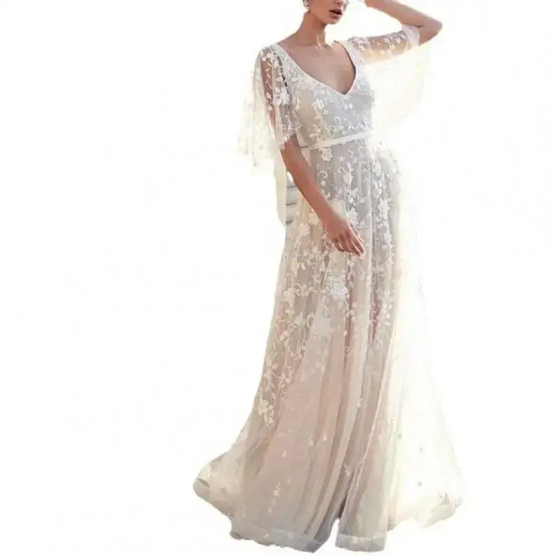 2025 White Dress New Style Sexy Lace V-neck Backless Dress Minimalist Womenswear Aesthetic Breathable(Sheet)