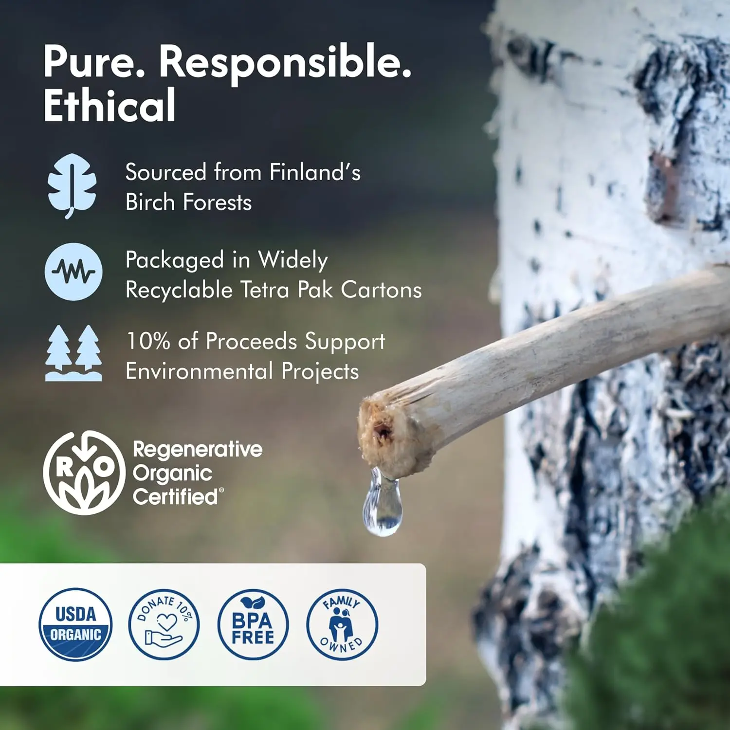 100% organic birch sap,wild harvested in Finland,no preservatives