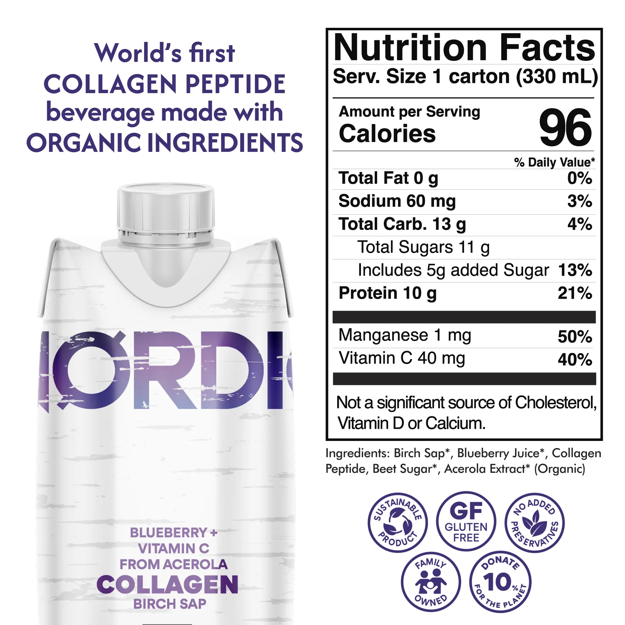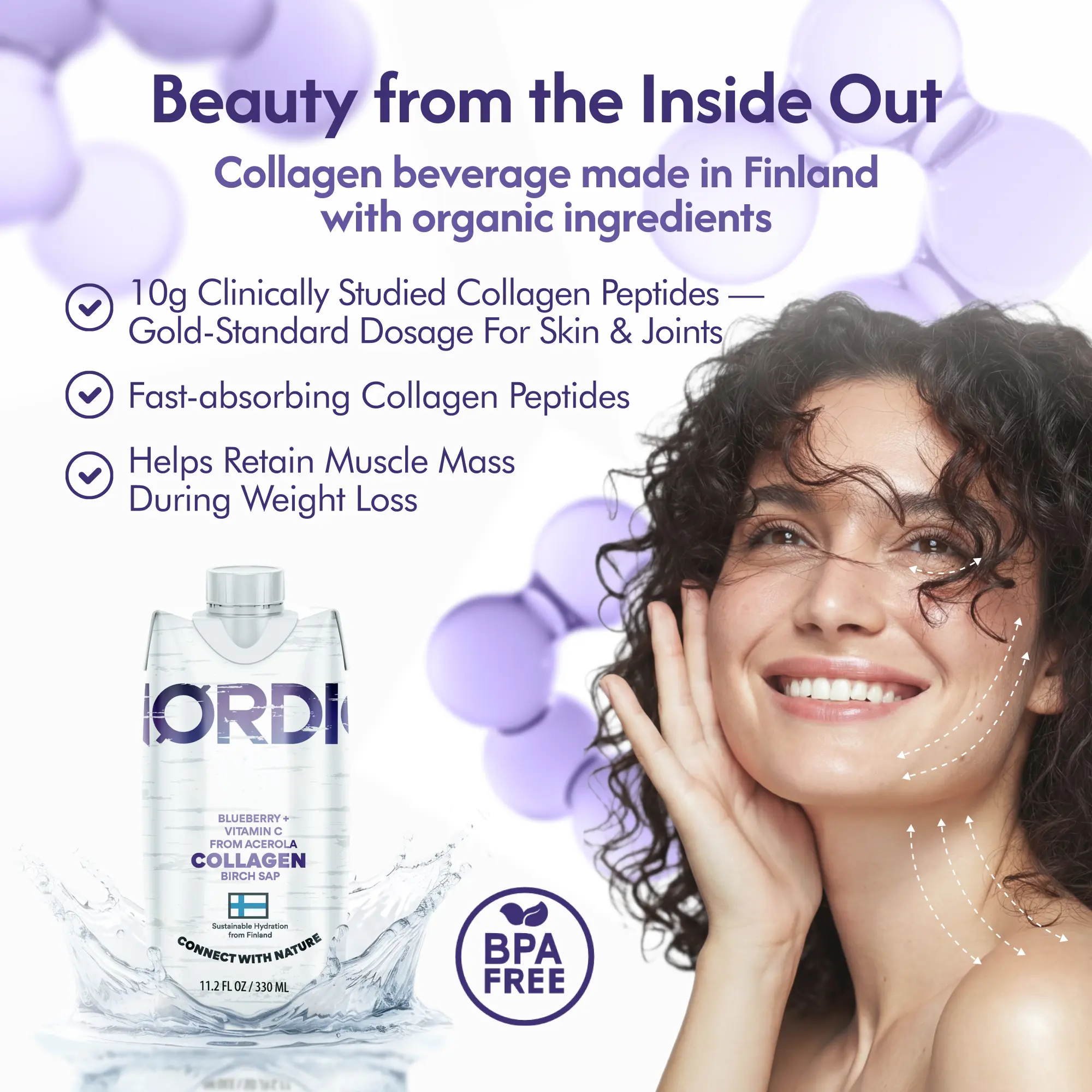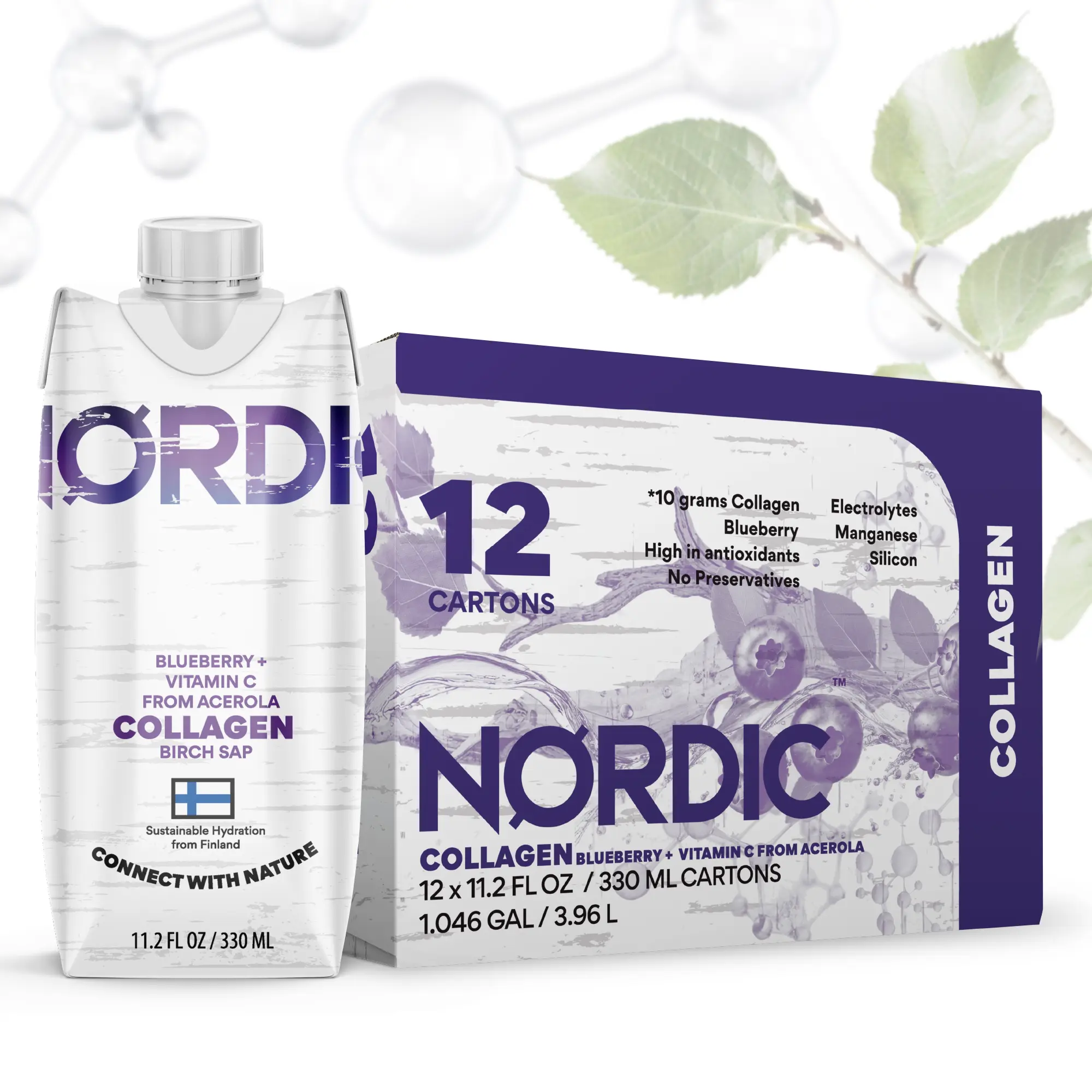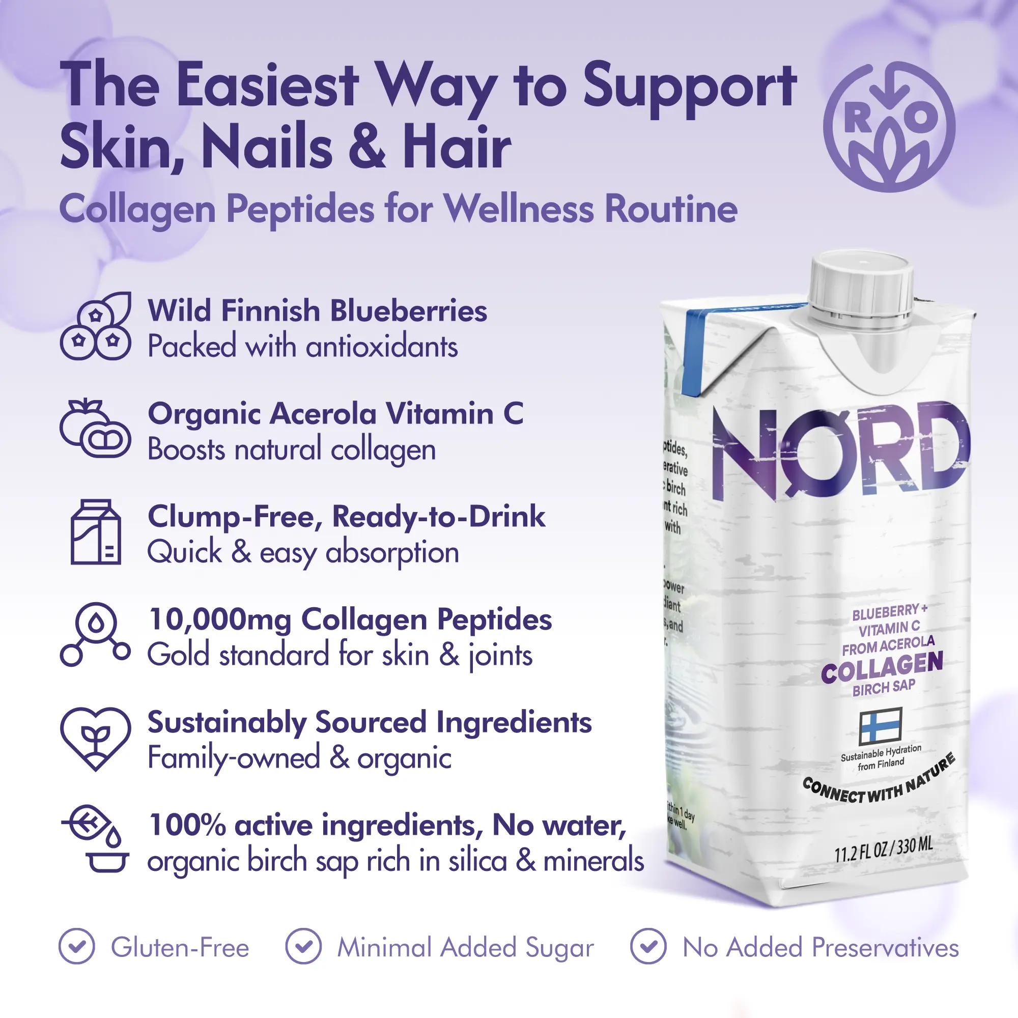 Experience the next evolution of beauty and wellness with our collagen birch water. We didn’t just create another collagen drink; we reinvented the foundation. Every bottle starts with USDA Organic and Regenerative Organic Certified® Birch Sap—a nutrient-dense “tree water” rich in silica, a key mineral for collagen production. Sourced sustainably from Nordic forests, this organic collagen drink is infused with antioxidant-rich Wild Blueberries from Finland and natural Acerola Vitamin C. Each serving delivers 10 grams of premium collagen peptides, clinically studied to support skin elasticity, joint health, and overall wellness. This organic liquid collagen is the first of its kind: a refreshing, delicious collagen beverage that combines clinical strength with organic purity. Drink in the nature. Radiate from within. Discover the best liquid collagen for your skin and body.