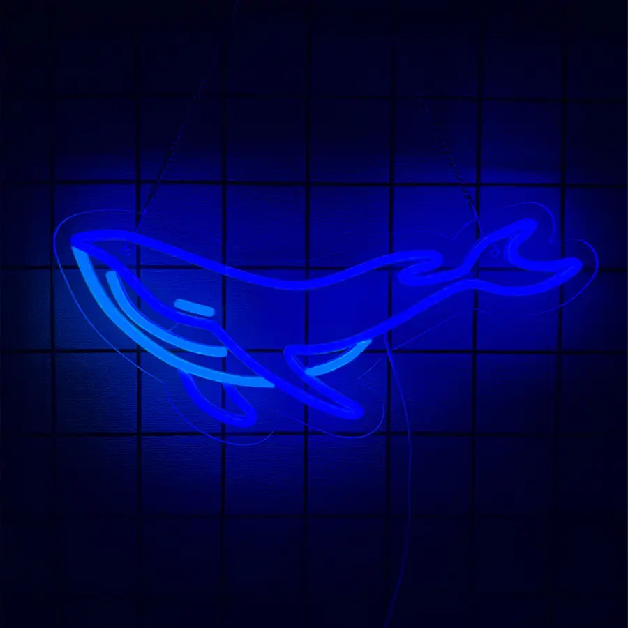 【Whale Neon Sign】: Features a unique whale neon sign, adding a distinctive touch to any room decor.