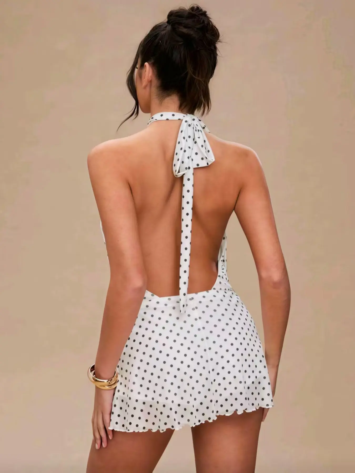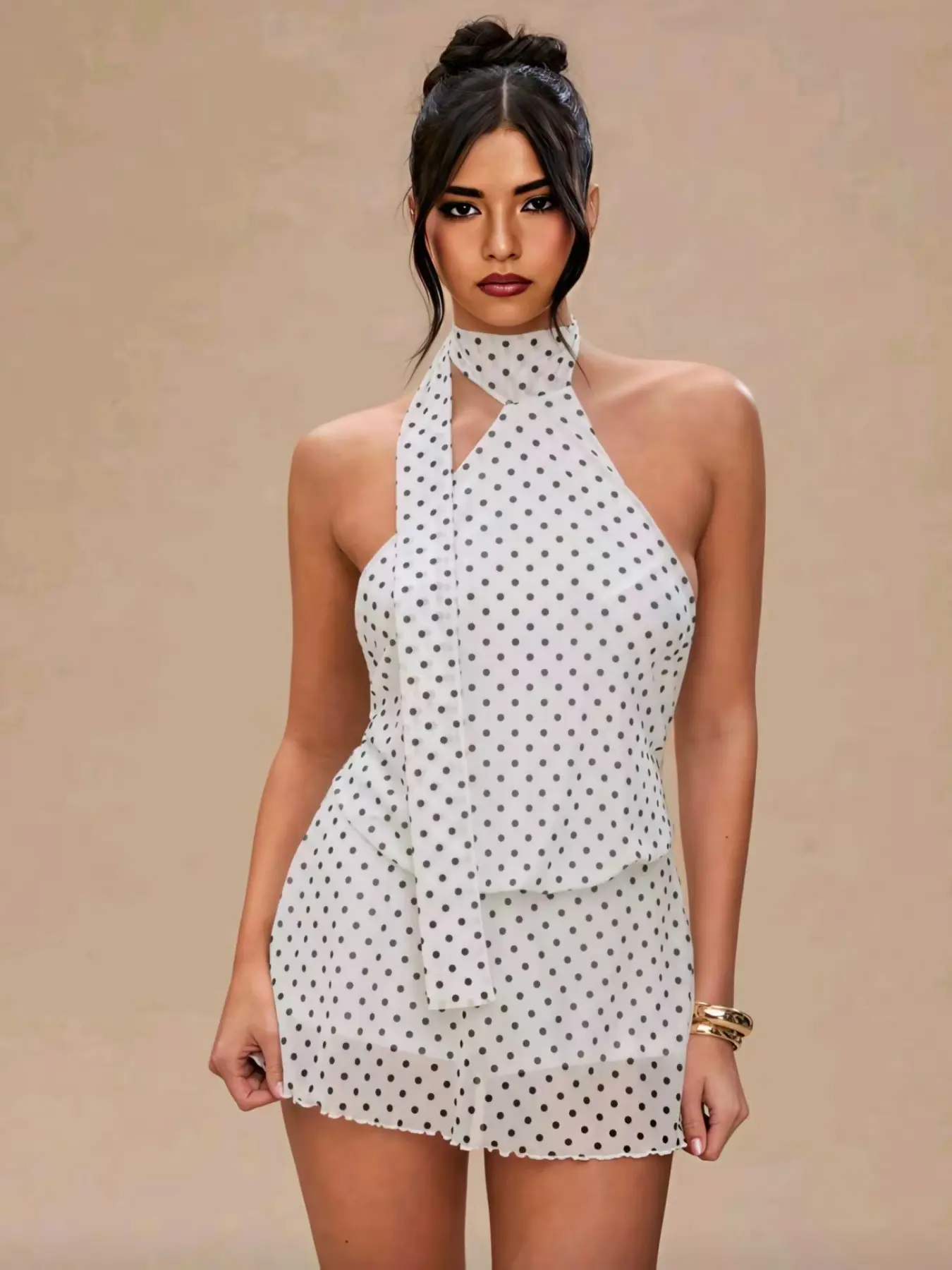 Holiday Polka Dot Print Fashion Strap Mini Dress, Perfect for Dates Vacation Party, Summer Dress Sy1025