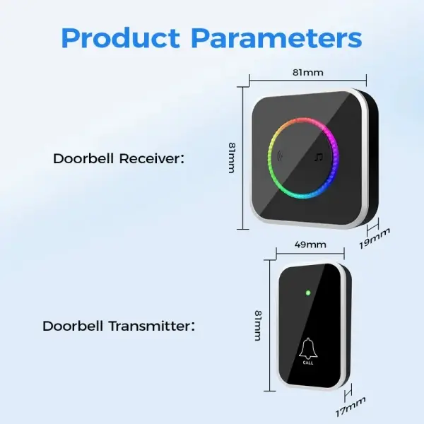 doorbell chimes, Wireless Doorbell, Easy installation, Waterproof, Adjustable Volume, 45 Chimes, Colorful LED, 1000Ft Range, M488-BS, Black IP44 (1 receiver 1 button)