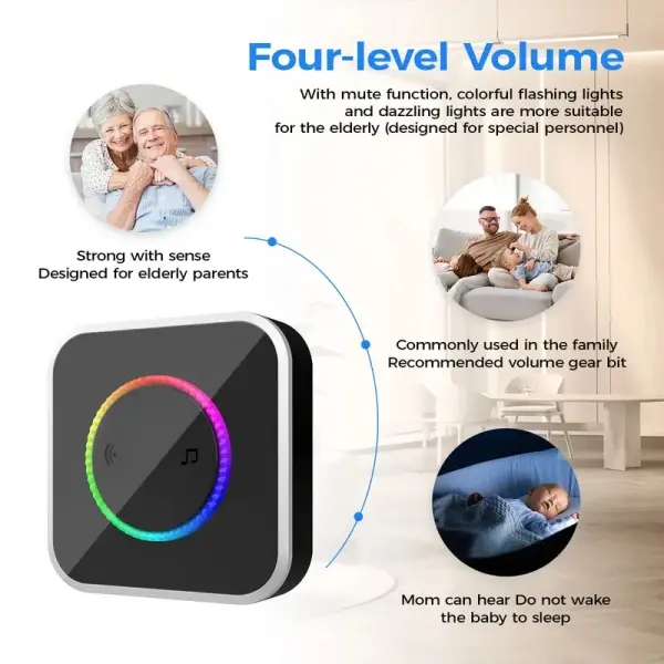 Wireless Doorbell with 1000ft Long-Range, Pre-Paired Plug & Play, 45 Chimes & 4 Volume Levels, Weatherproof IP44, Energy-Saving, Battery-Operated, Durable ABS Housing