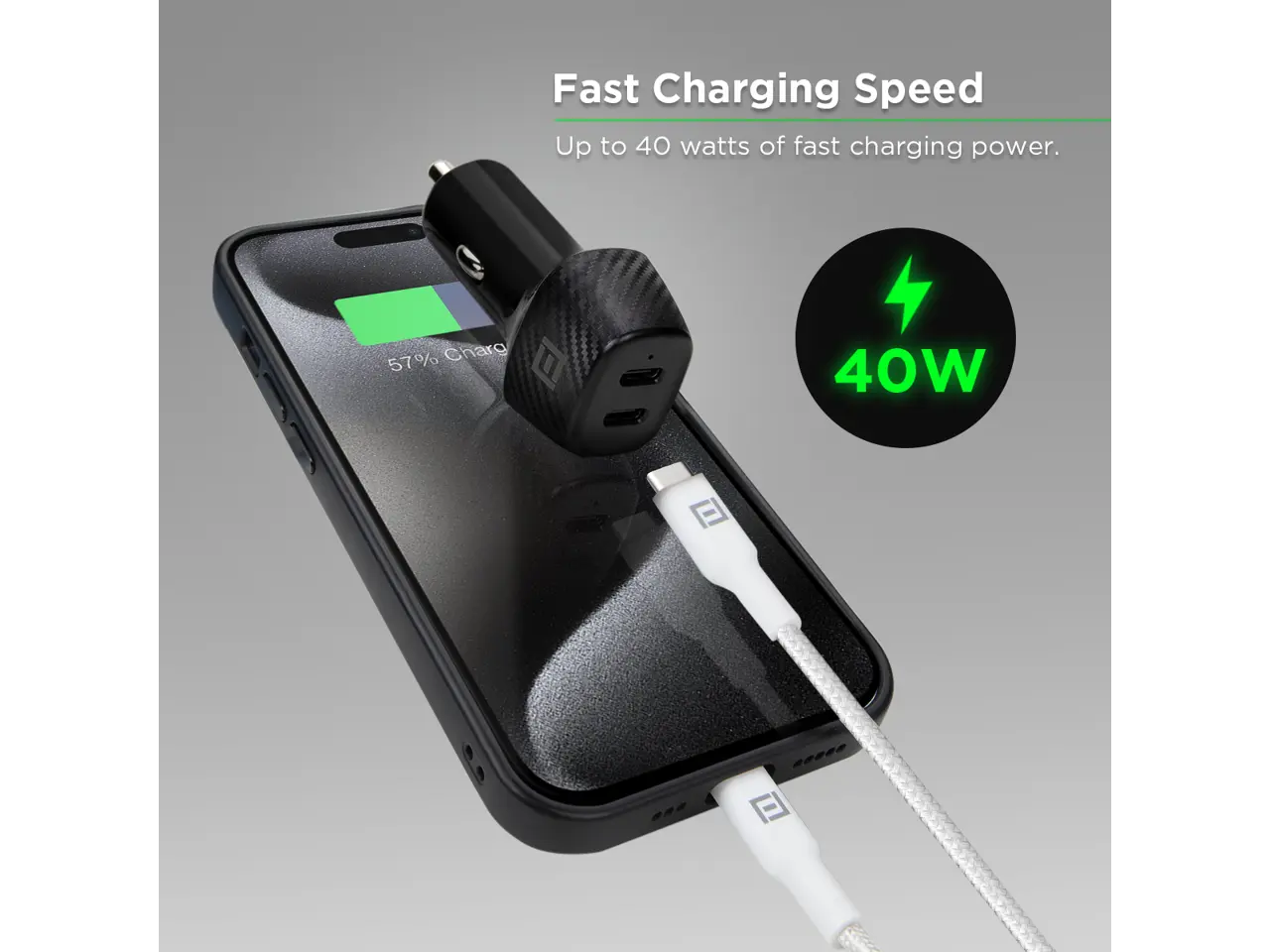 PureGear 40W Dual Port USB-C Car Charger, Black | 65182FF
