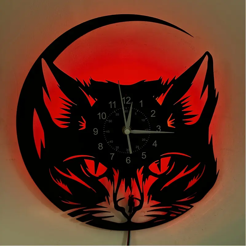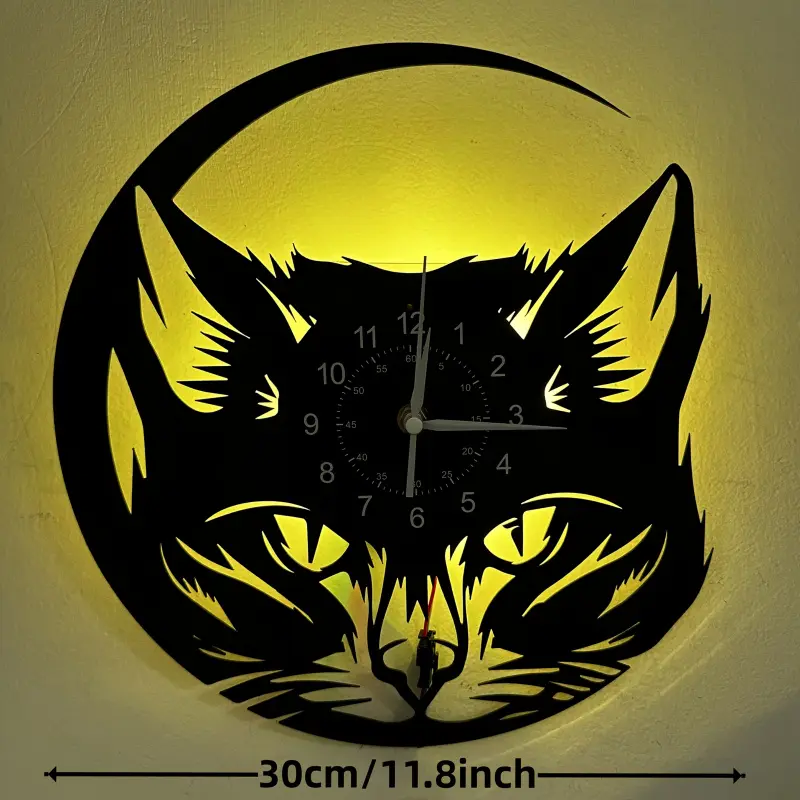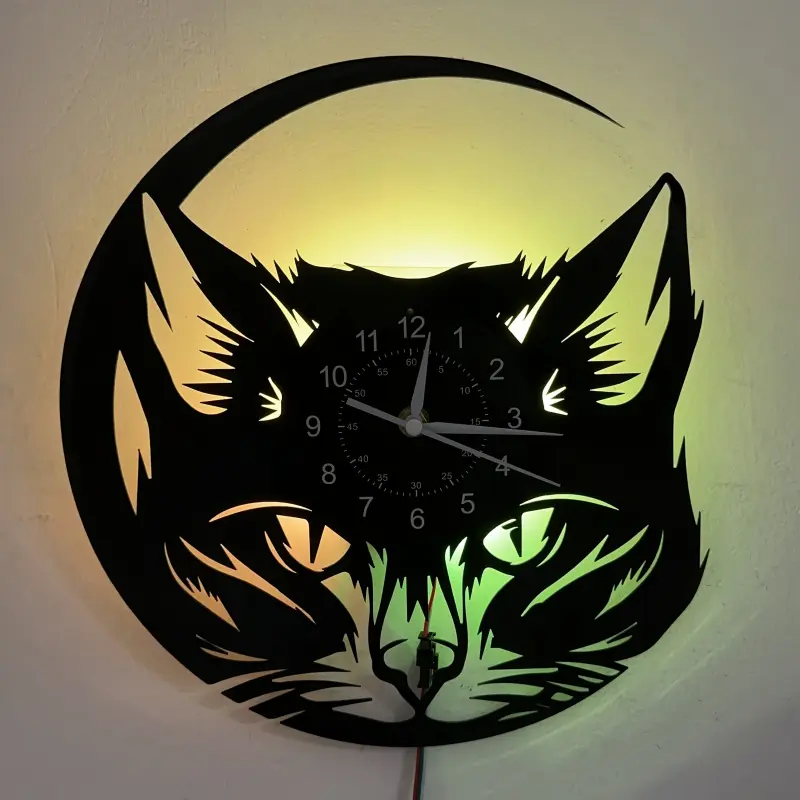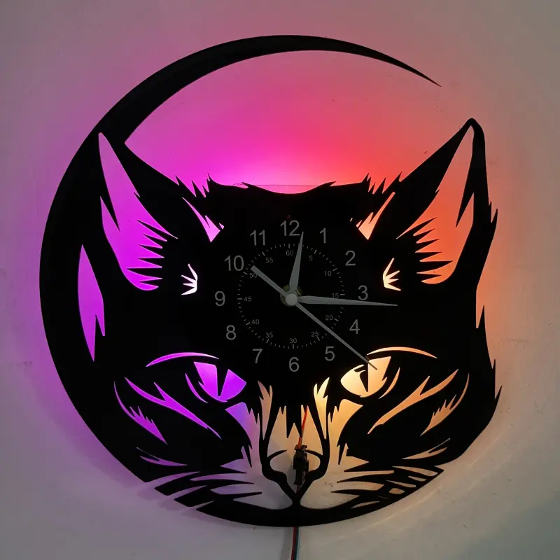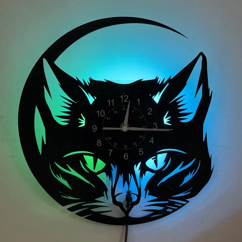 5. Cat-Themed LED Color Changing Vinyl Wall Clock Irregular Modern Room Decor for Classroom Birthday Christmas Gifts (Battery Not Included)
