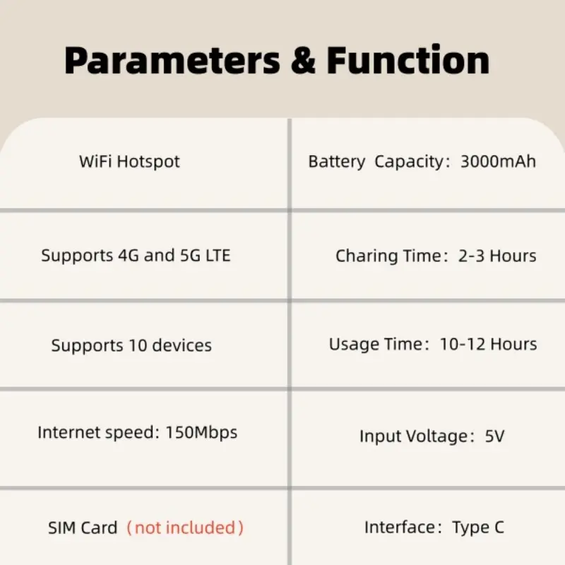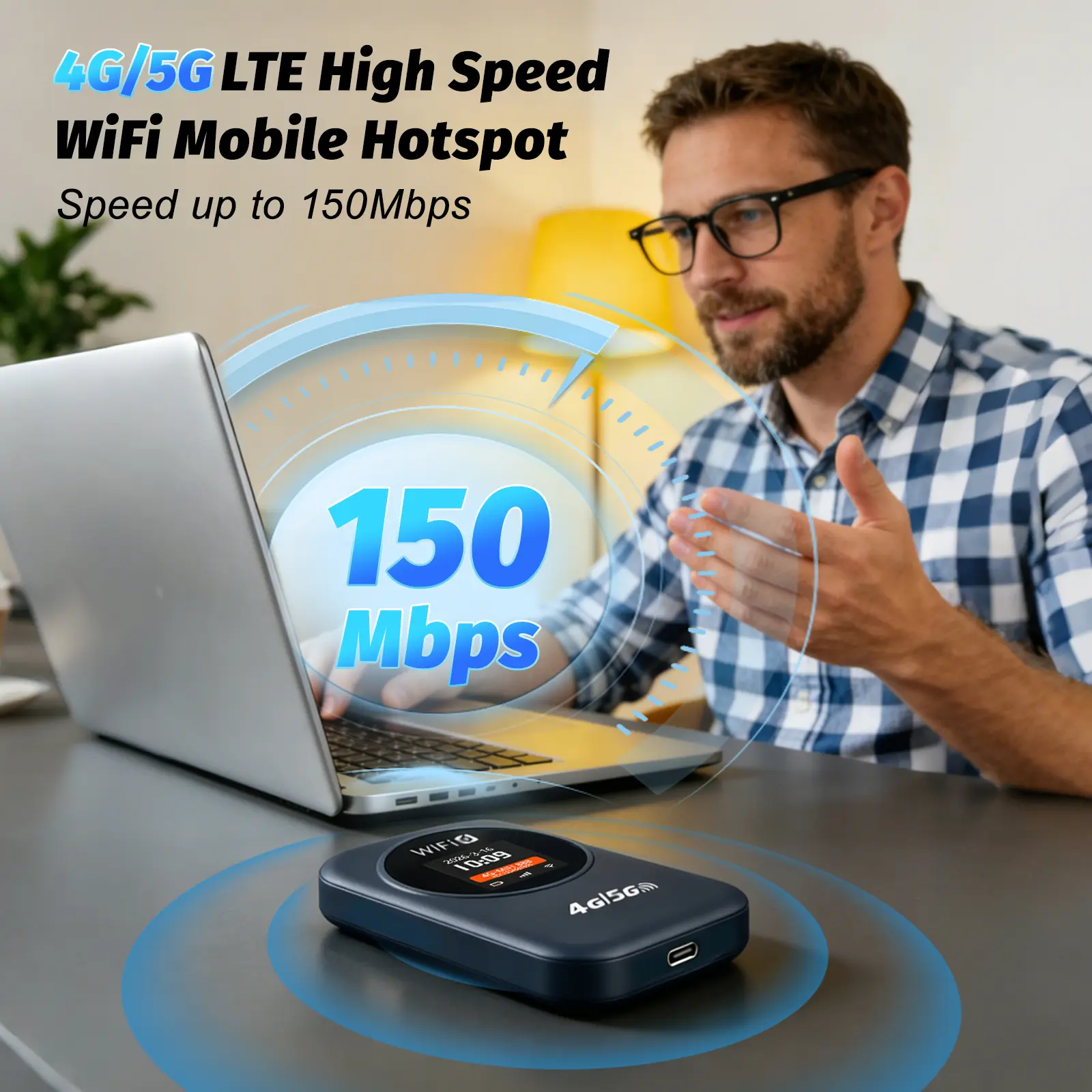 Portable 5G/4G LTE WiFi Hotspot-150Mbps Speed,Connect Up to10+ Devices,Mobile WiFi Hotspot for Travle/RV/Business/Cruise