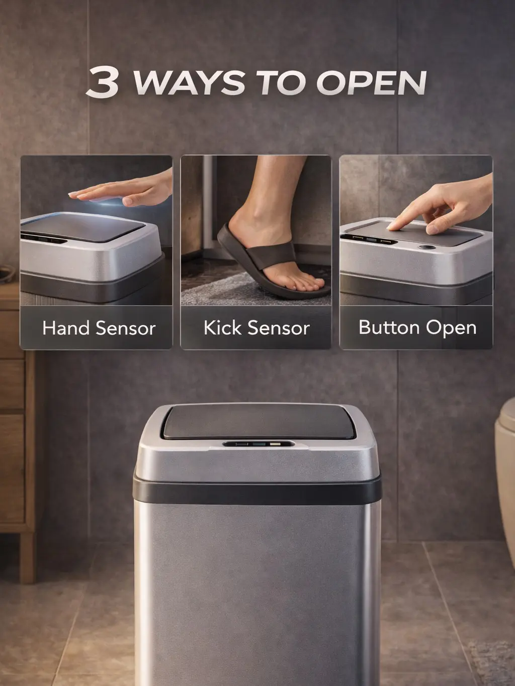 Tired of touching dirty trash can lids? Upgrade your home with this automatic sensor trash can. It opens with just a wave of your hand. Clean, convenient, and modern. Unlike traditional trash cans, this smart bin features a smooth and quiet closing system. No loud slamming. No disturbing noise. Perfect for bedrooms, offices, and bathrooms.