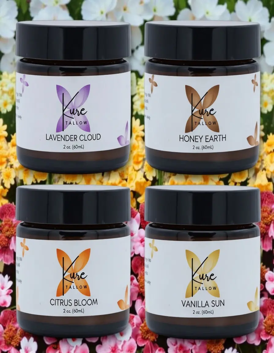 Includes four individually poured tins of our grass-fed & finished tallow whips. Free from synthetics, parabens, and seed oils.
