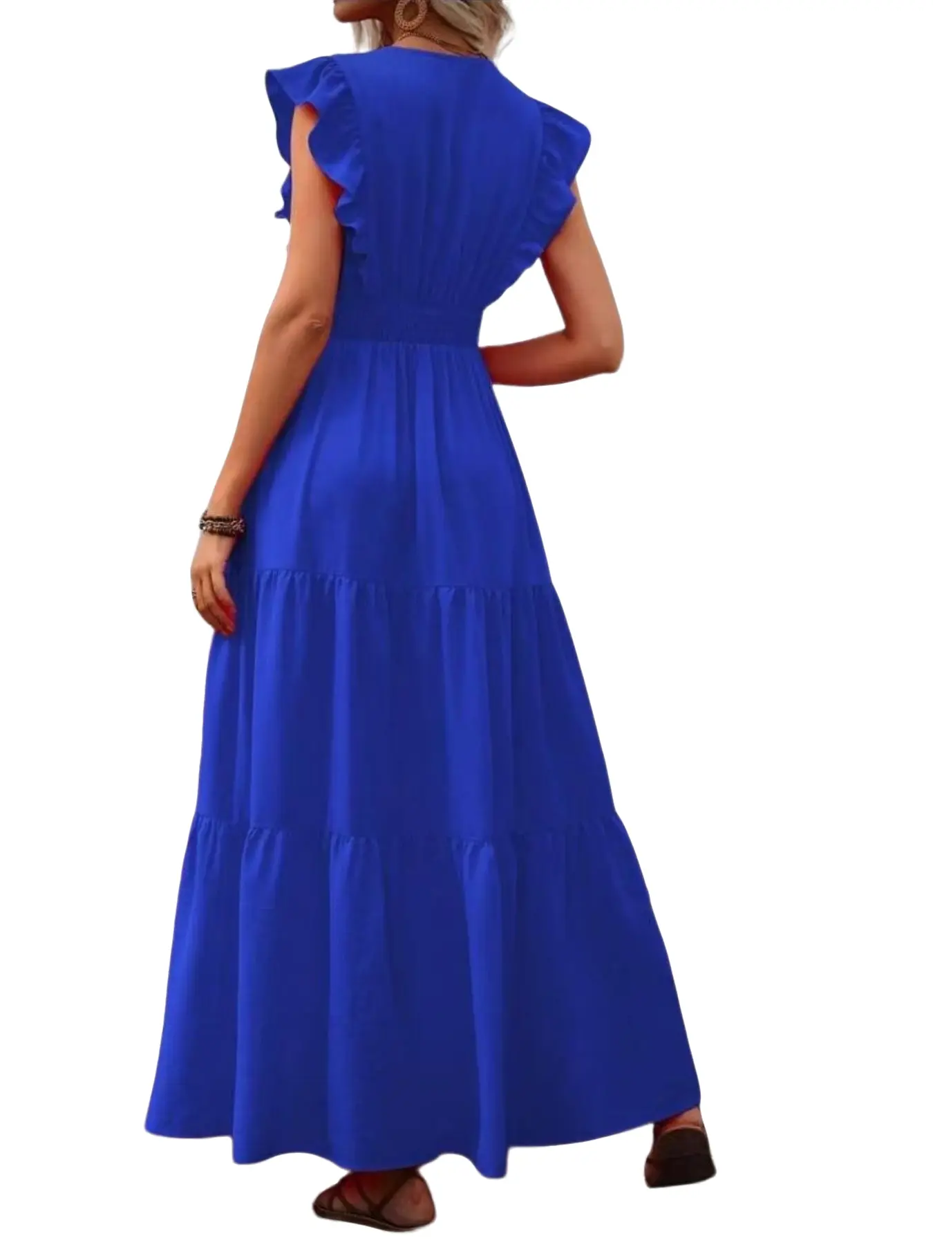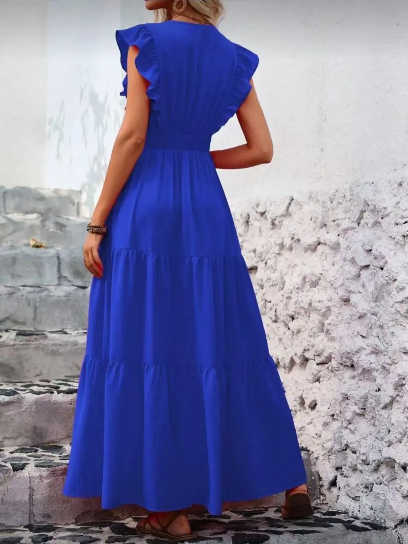 Elegant V-Neck Waist-Cinching Dress, Spring Summer Long Maxi Dress, Women's Fashionable and Stylish Clothing