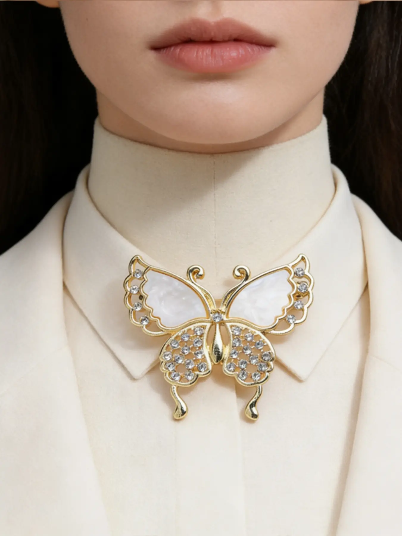 Elegant Butterfly Brooch Pin for Women, French Style Shell Rhinestone Hollow Out Design, Versatile Decorative Lapel Pin