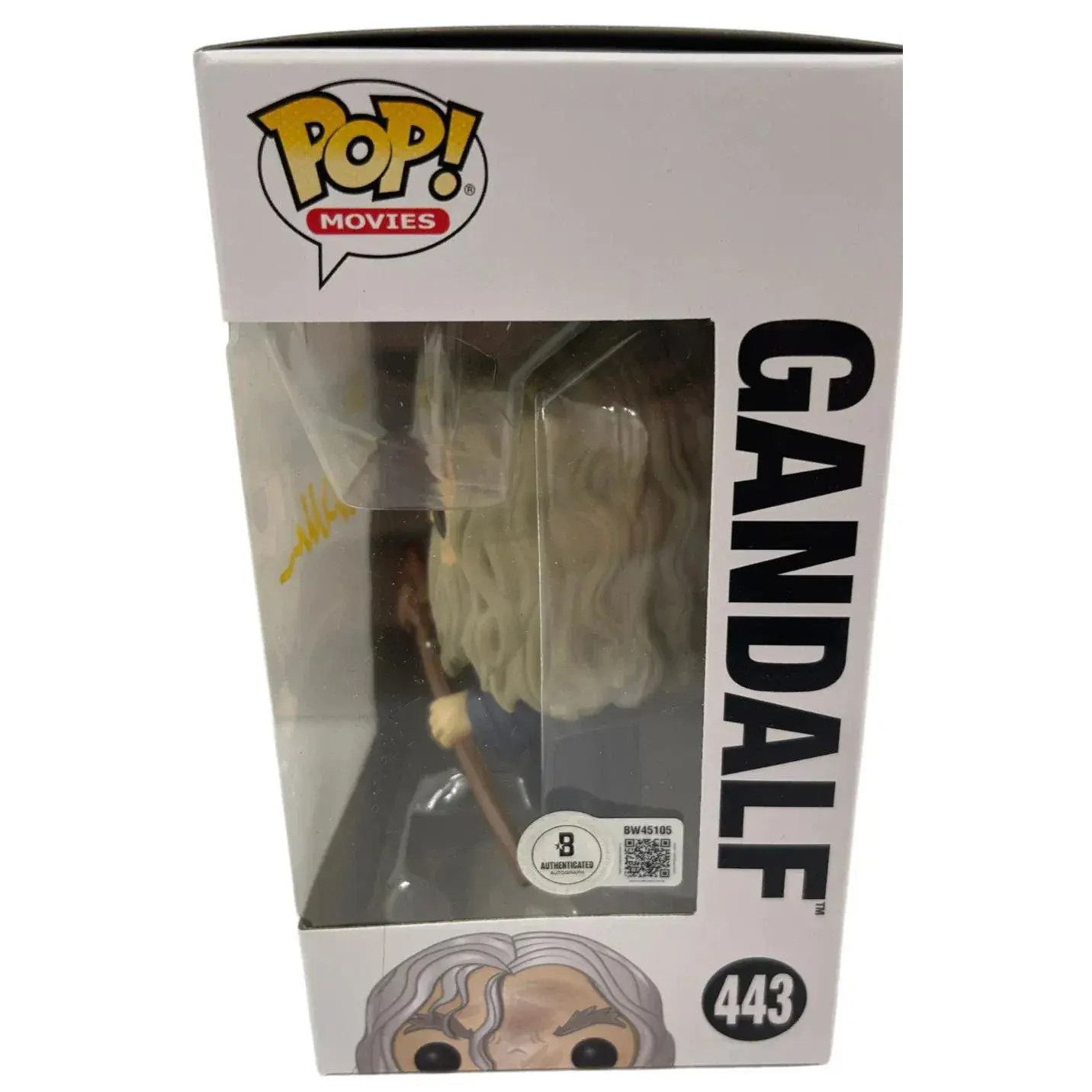 Ian McKellen signed this Gandalf Lord of the Rings Funko Pop figure #443. McKellen plays Gandalf the Grey — the wandering wizard whose guidance and intervention shape the entire course of the War of the Ring — across Peter Jackson's trilogy and in The Hobbit films. It's a role that required McKellen to balance authority, warmth, mystery, and occasional comic relief, and he managed all of it with a lightness of touch that made Gandalf feel genuinely magical. A Beckett-authenticated Funko signed by one of the most beloved characters in the fantasy genre is a natural piece for any Lord of the Rings collection.