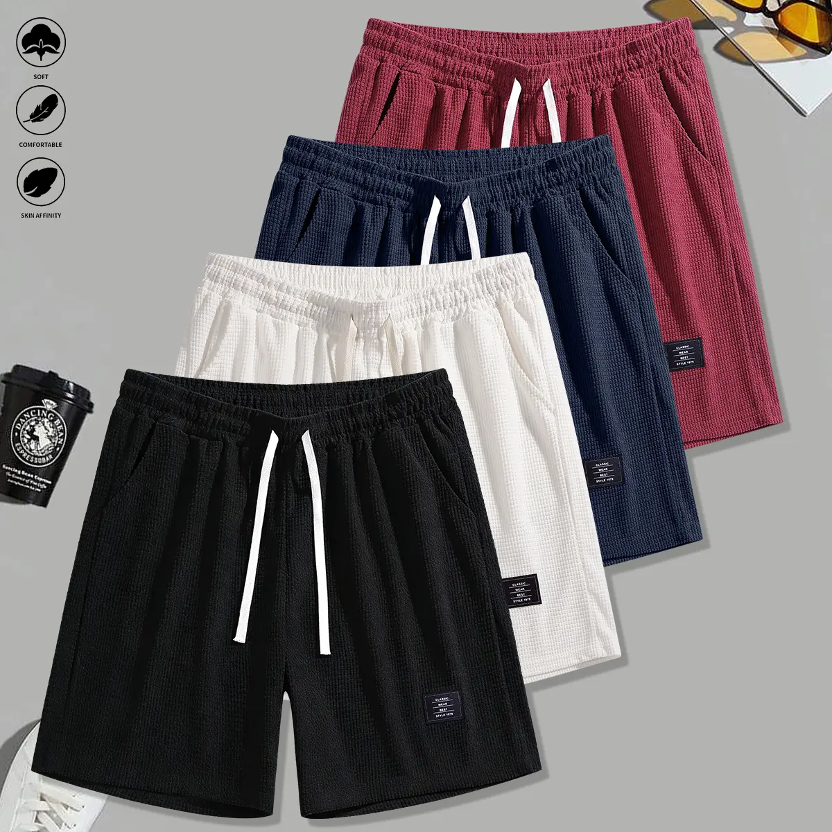 Set of 4 men’s summer new loose casual athletic shorts featuring an elastic waistband with drawstring adjustment, side pockets for convenient storage, knit fabric—ideal for running, workouts, outdoor activities, and everyday wear.