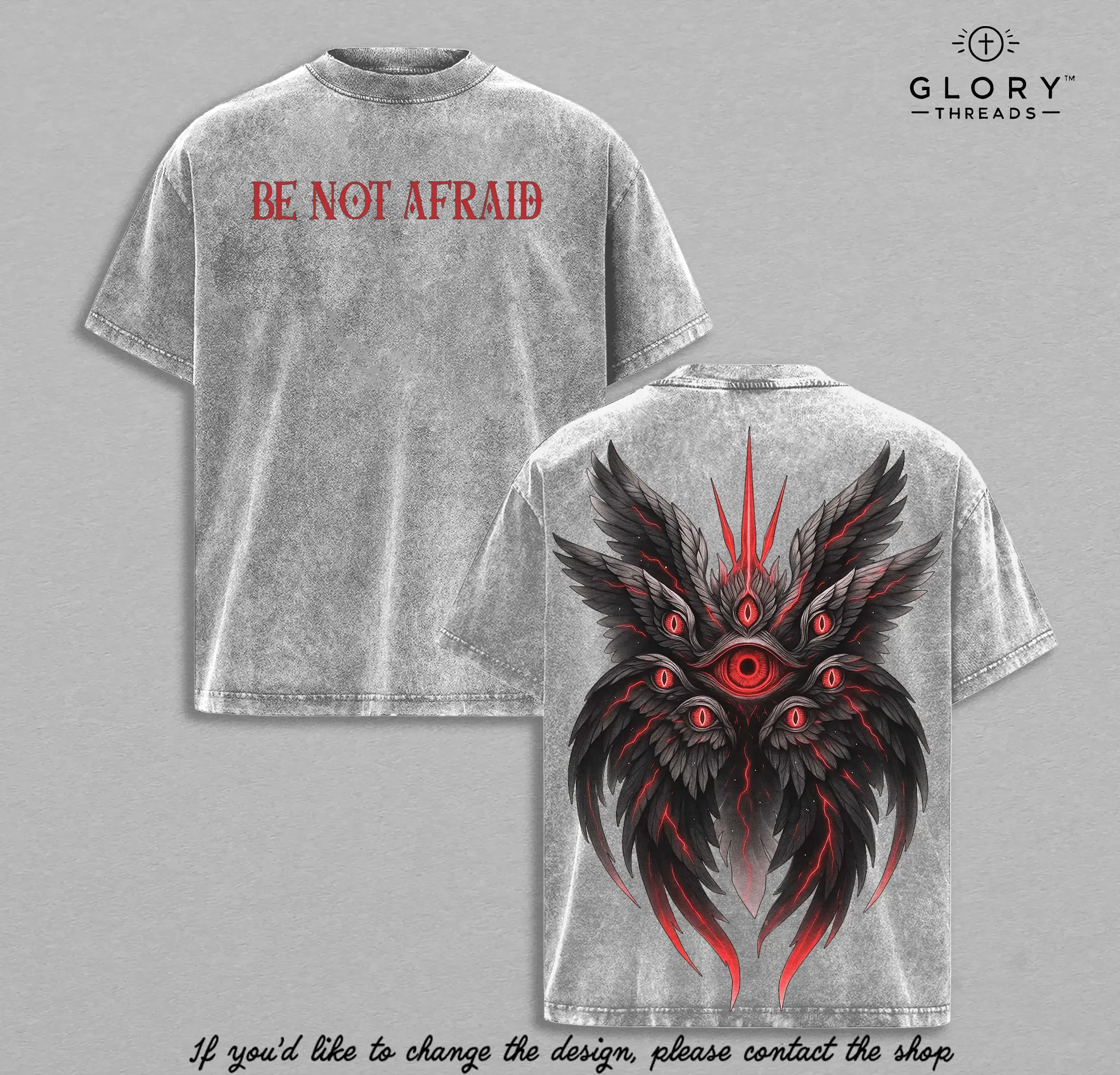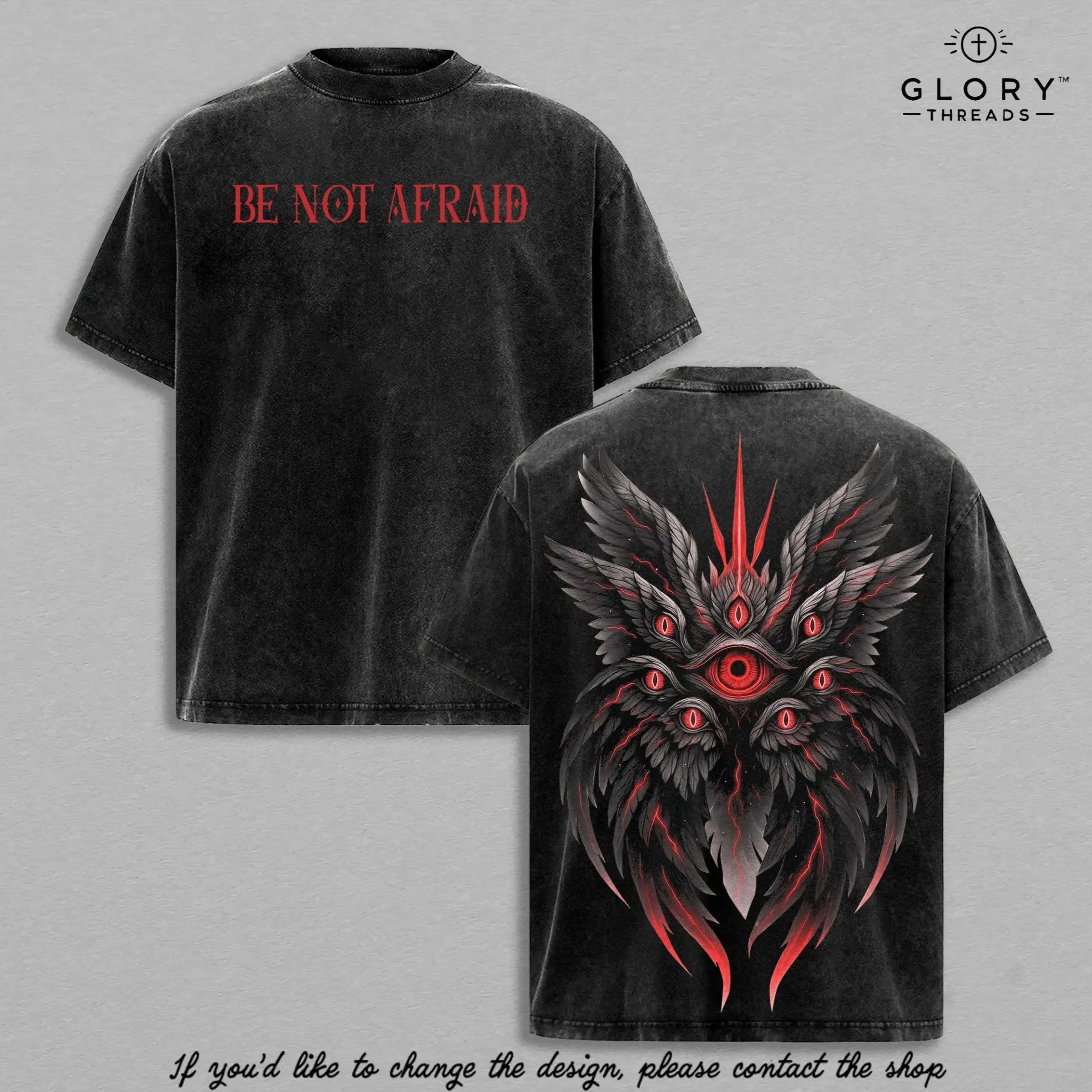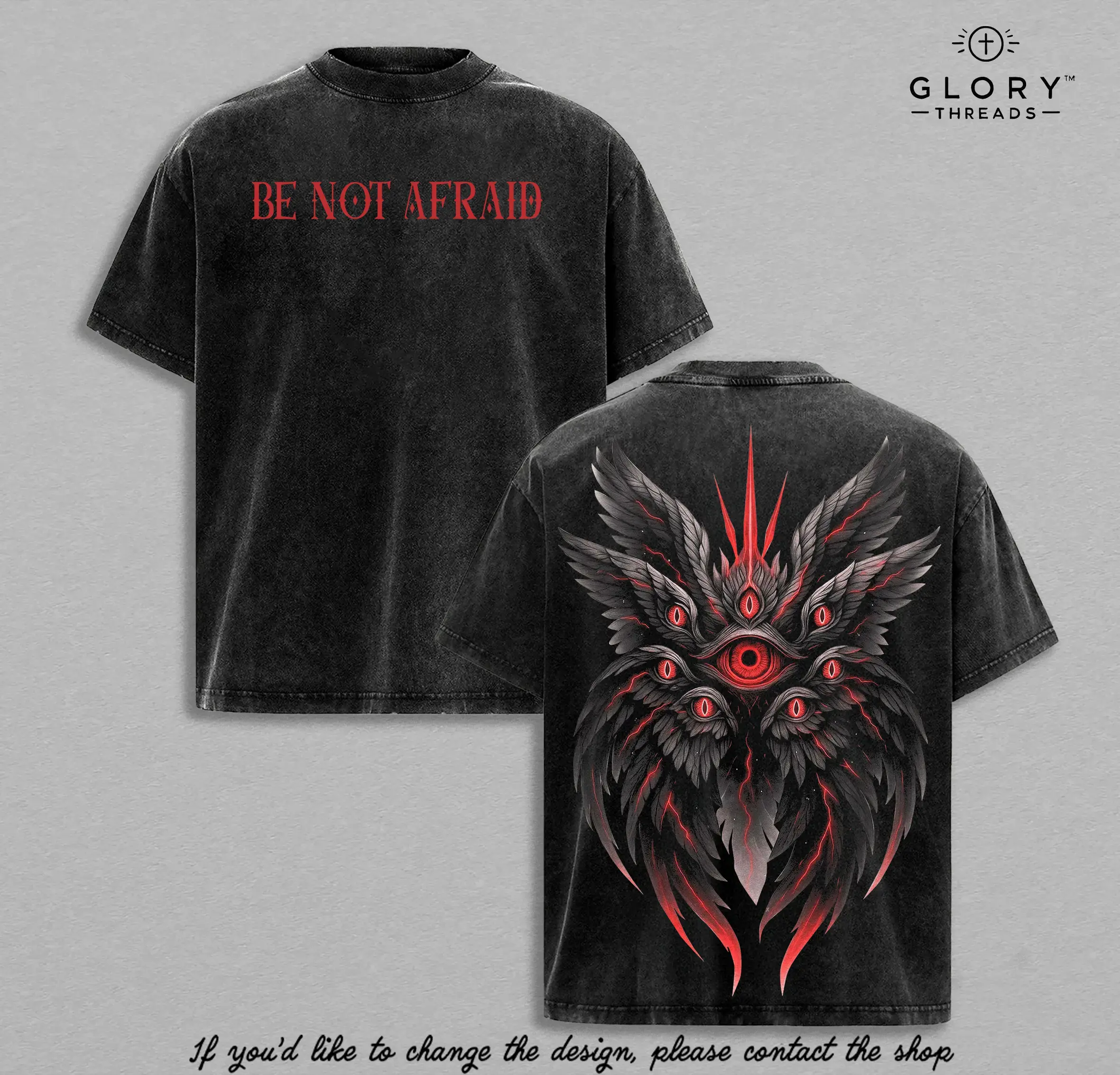 Be Not Afraid Seraphim Angel T-Shirt | Biblical Guardian Angel With Many Eyes | Christian Faith Vintage Washed Oversized Tee | Spiritual Warrior Shirt | Dark Angel Graphic Streetwear | Religious Apparel For Believers USA