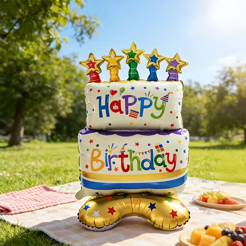 Standing 38 Inch Birthday Cake Shaped Balloon, Party Atmosphere Decoration, Event Gift Prop, Indoor Outdoor Room Decor