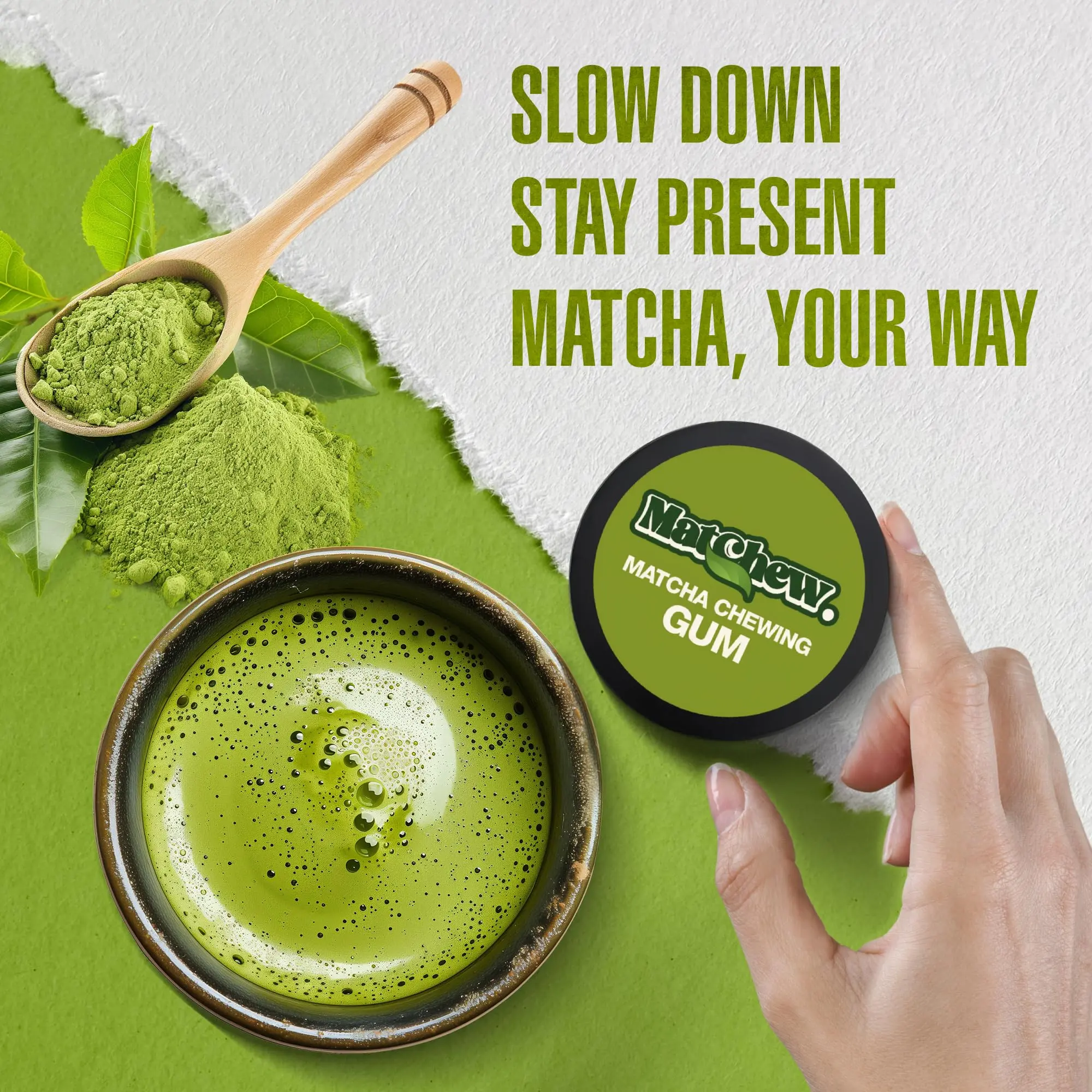 Naturally Crafted & Clean Ingredients — Made with authentic matcha powder, gluten-free formulation, non-GMO, and free from artificial additives—perfect for those seeking a wholesome chewing option.
