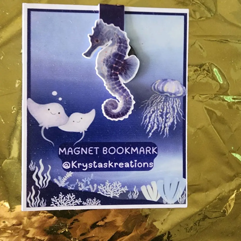 ·This bookmark features a charming seahorse design, perfect for adding a touch of whimsy to your reading experience. The seahorse is not just a decoration; it doubles as a magnet, making it easy to attach to your fridge or any magnetic surface.