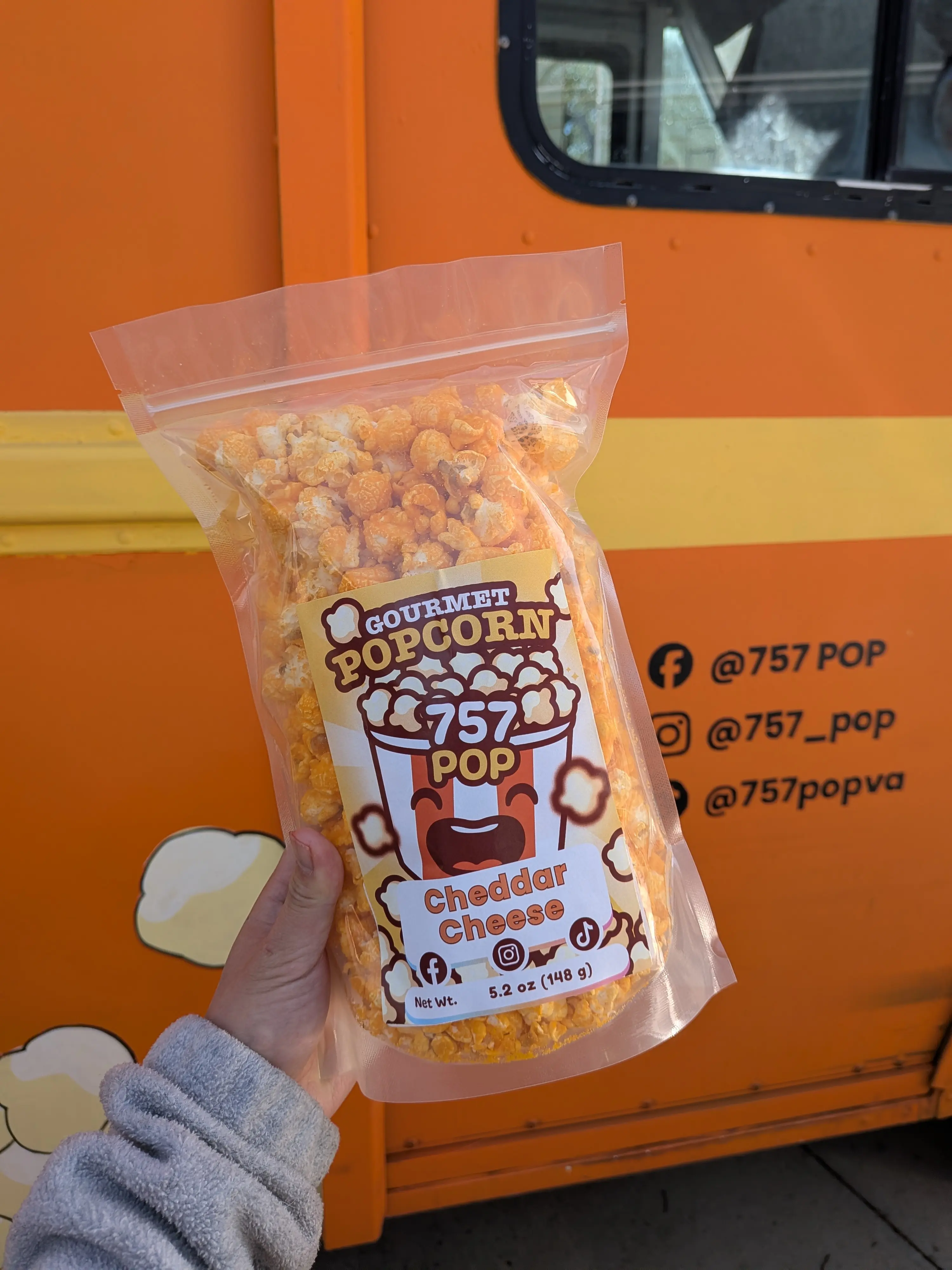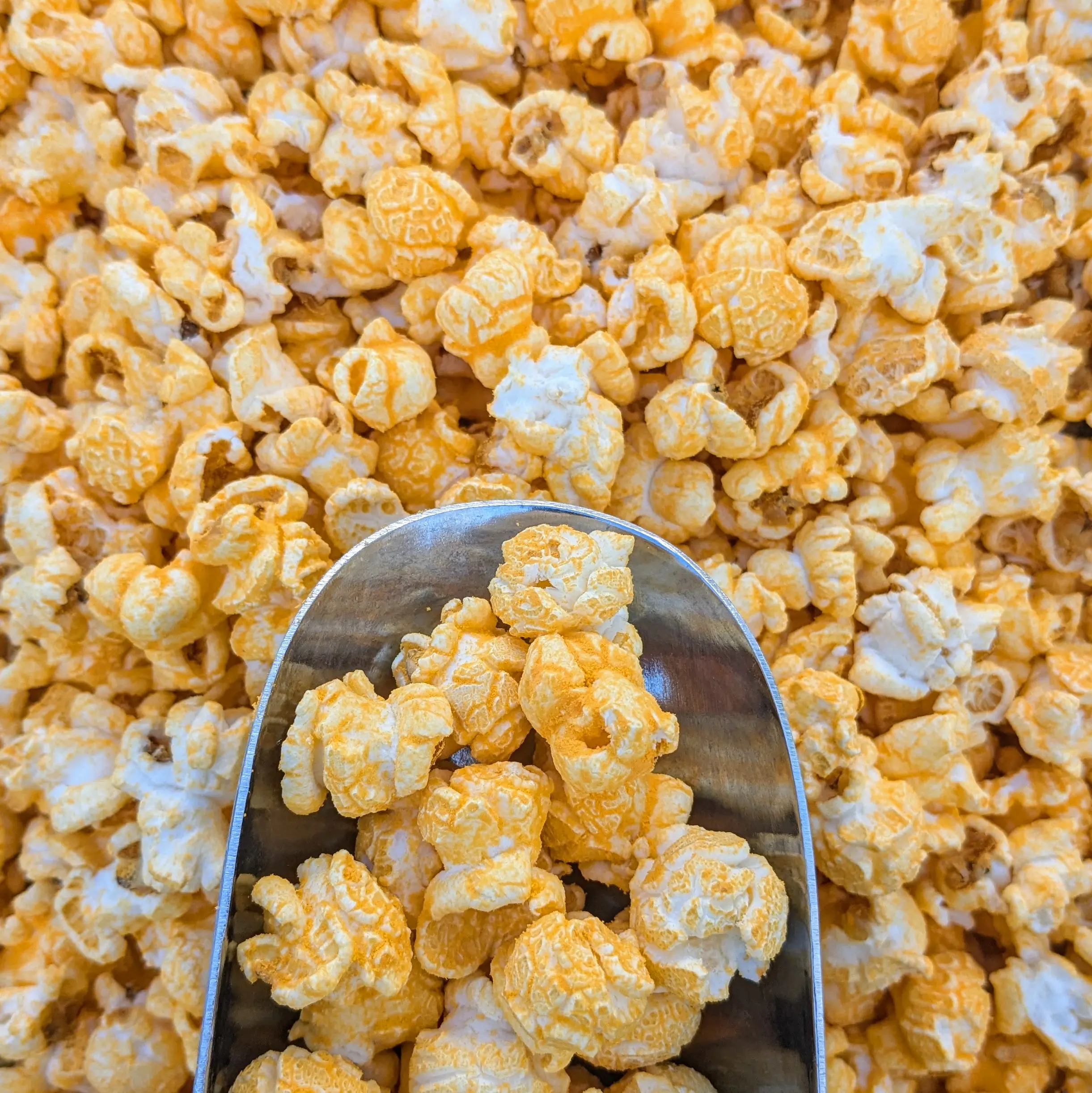 Our Cheddar Cheese Popcorn is everything you want in a savory snack. We start with fresh-popped popcorn, coat it in a rich cheddar seasoning, and package it fresh so every bag hits just right.