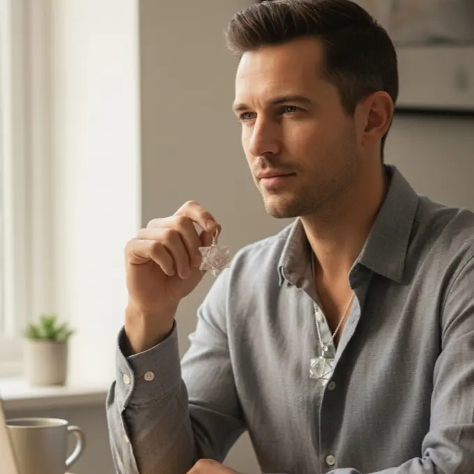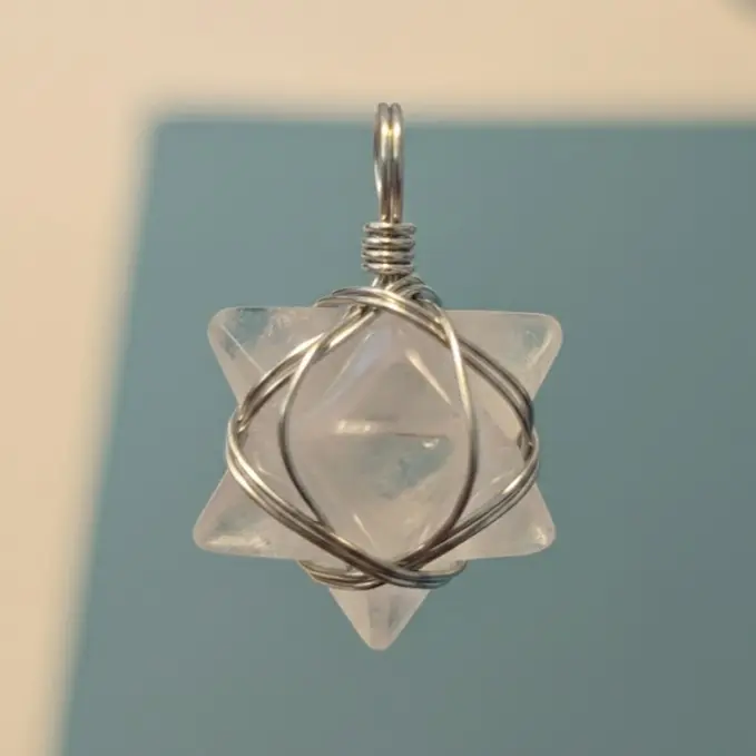 The Power of Clear Quartz Merkaba: The sacred Merkaba geometry (Star Tetrahedron) is a powerful symbol of spiritual light, ascension, and balance, representing the union of mind, body, and spirit. Crafted from genuine Clear Quartz—the "Master Healer"—this pendant amplifies energy and intention.