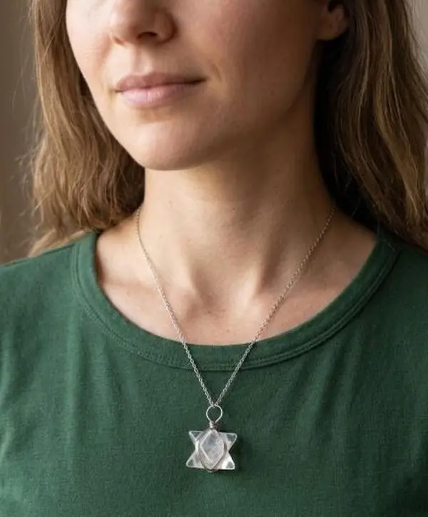 Merkaba Star Necklace – Frequency Infused Crystal Pendant for EMF Protection, Wire Wrapped Sacred Geometry Jewelry - Energy Healing, Chakra Alignment, Anxiety Relief, Elevated Mood, and the Master Healer