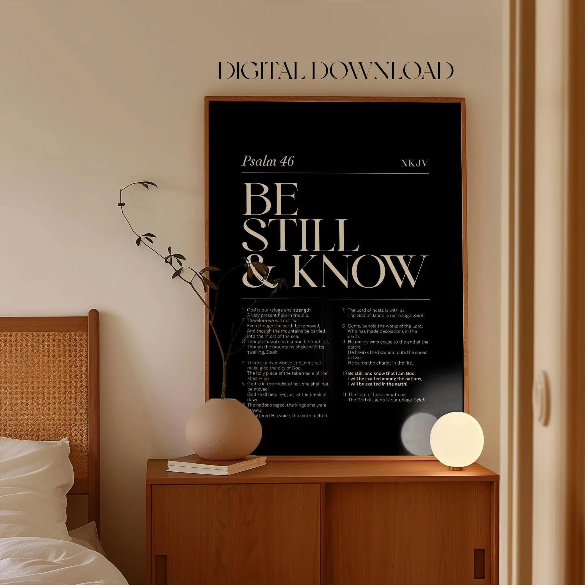 [Sale off up to 50%] [No frame, Free Ship] Psalm 46 Be still and know Trendy Black Prints Bible Verse Wall Printable, Bible Chapter Poster, Modern Christian home, New home wall art (No Frame)