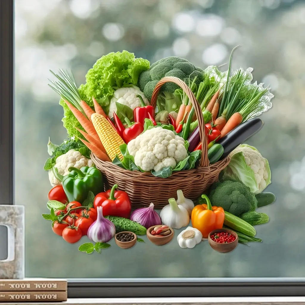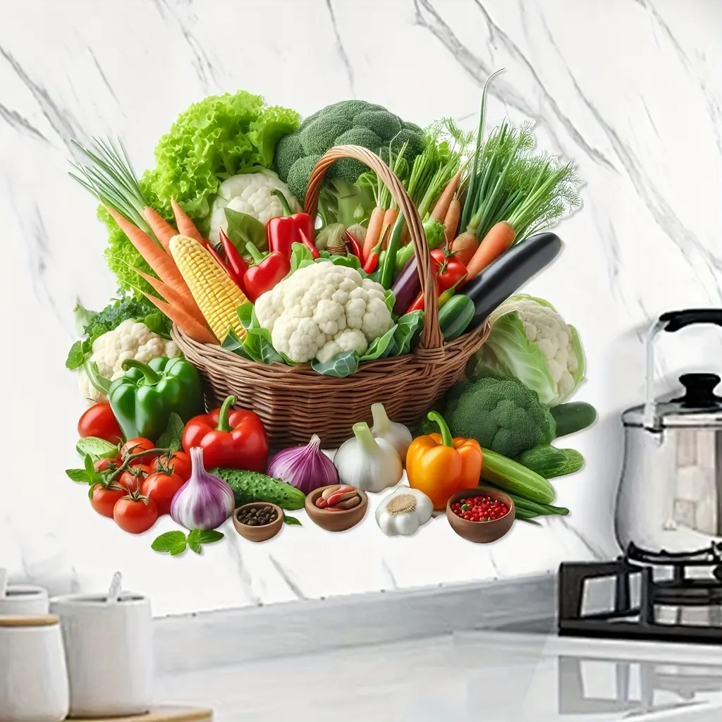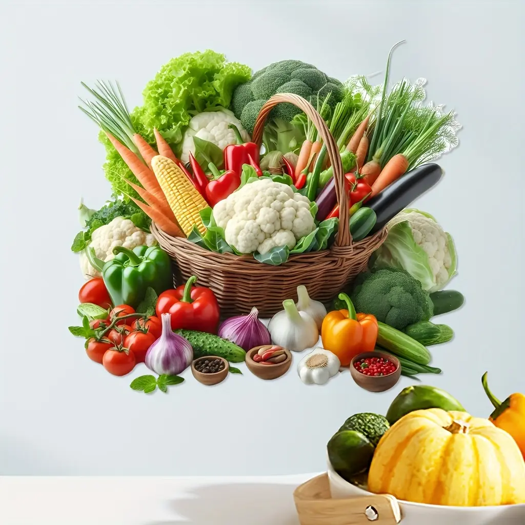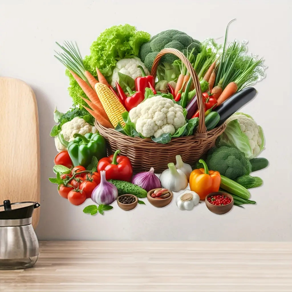 Self-Adhesive Removable Vegetable Fruit Wall Decal, Kitchen Living Room Decoration, Easy Peel & Stick Vinyl Art, Home Decor Sticker