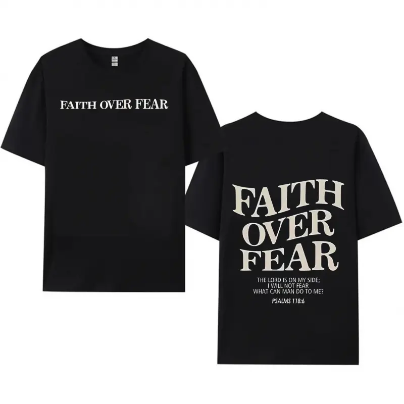 Retro Washed T-Shirt Double Sided Printed 180 Pure Cotton 'FAITH OVER FEAR' Letter Print Mens Casual Comfortable Fashionable Street Style Cotton Menswear Top Short Sleeve Crewneck Festive Tropical