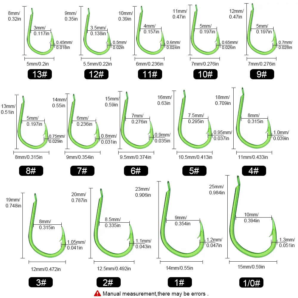 FTK Ise-Ni Fishing Hooks, Fluorescent Green, Flattened, 100pcs Stainless Steel, High-Carbon Steel, Barbed