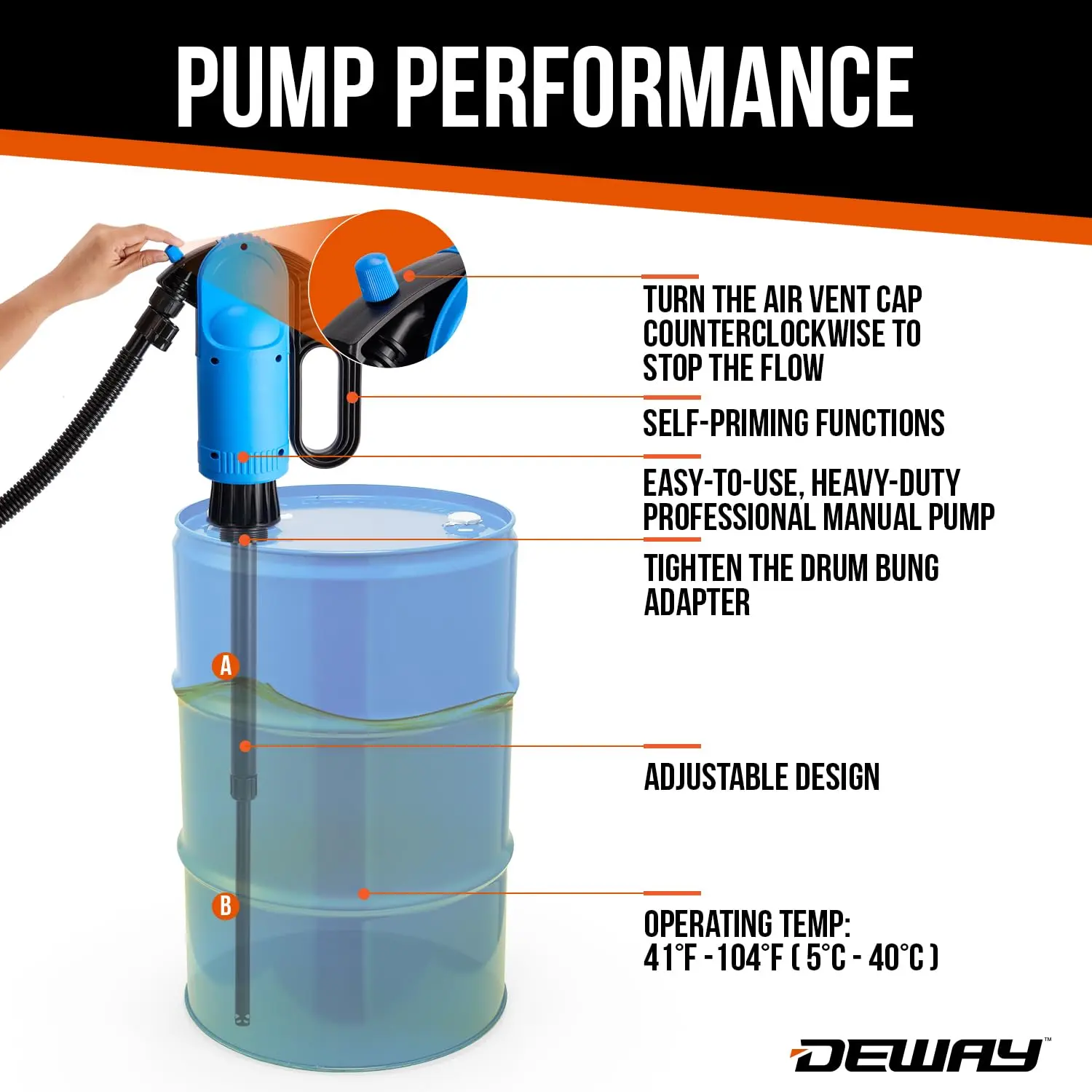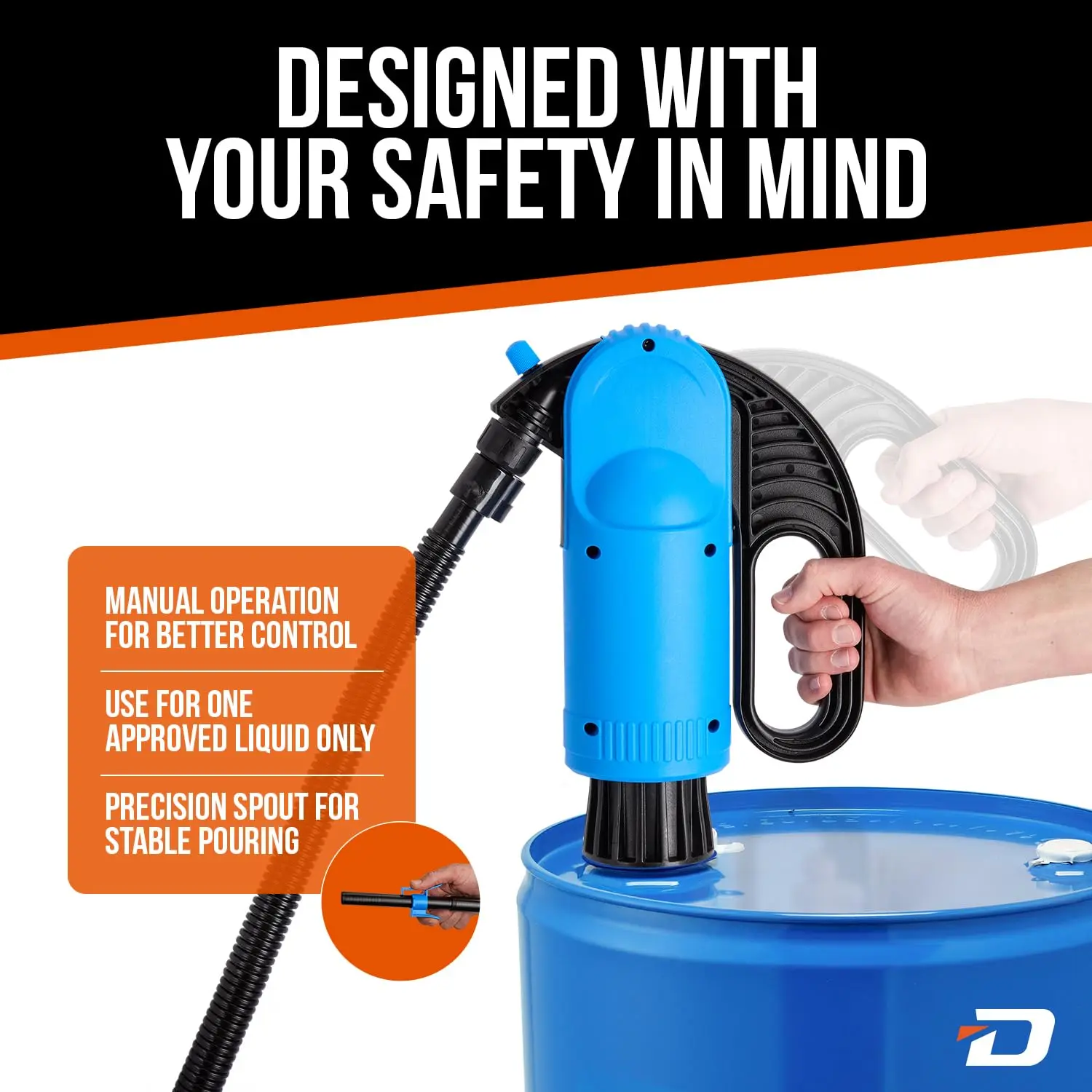 HEAVY-DUTY MANUAL LEVER ACTION | Smooth hand-operated lever design delivers consistent, controlled liquid transfer without electricity or batteries | Operates efficiently with a steady up-and-down pumping motion | No cords or external power required; reliable anywhere you need it | Ideal for garages, workshops, farms, and light industrial use