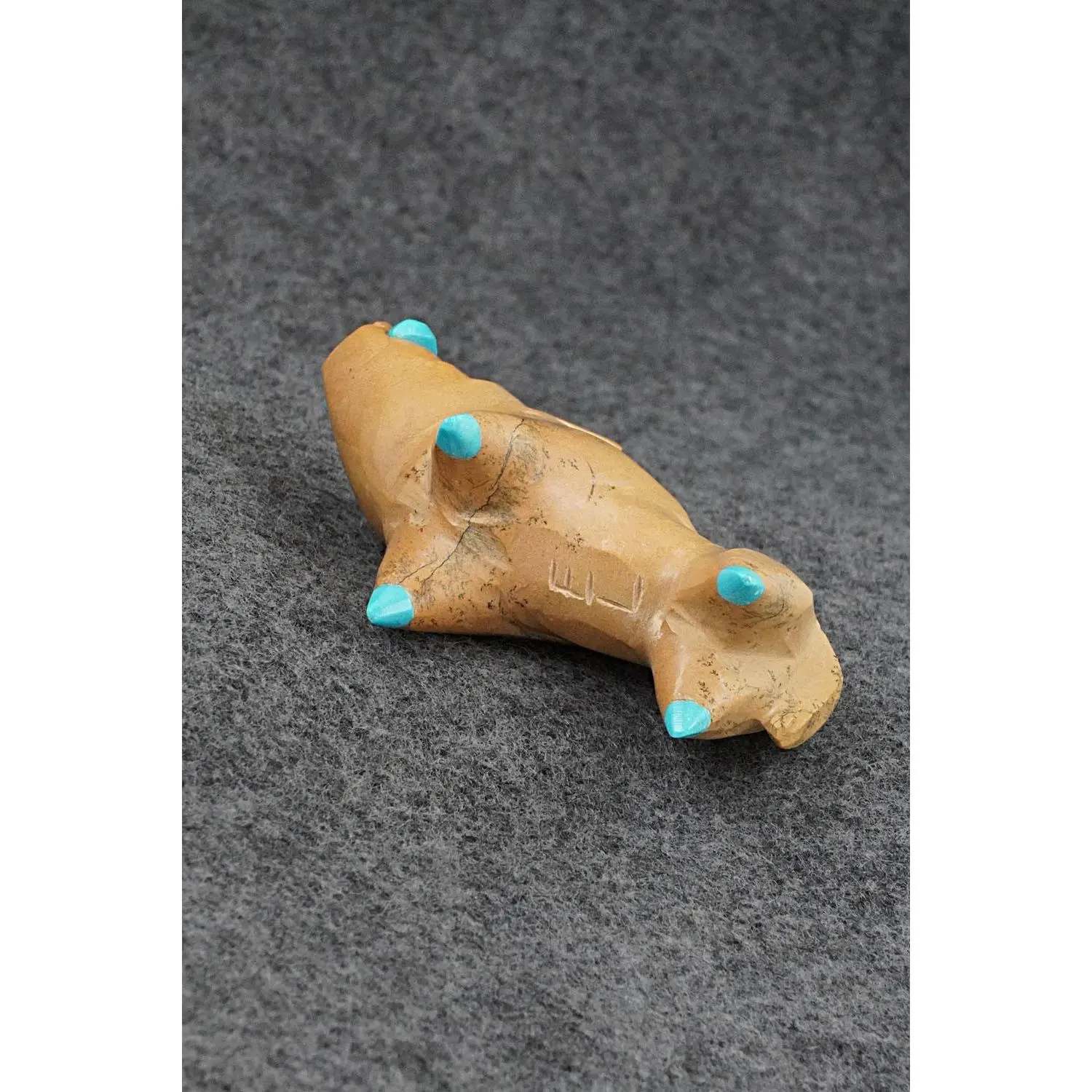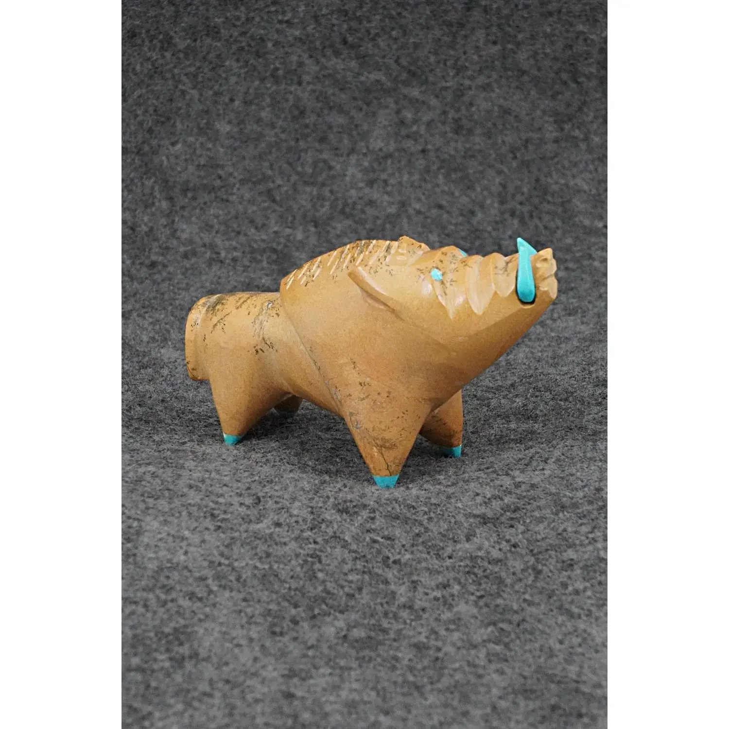 This warthog Zuni fetish was carved by Enrike Leekya. The bottom is signed EL.