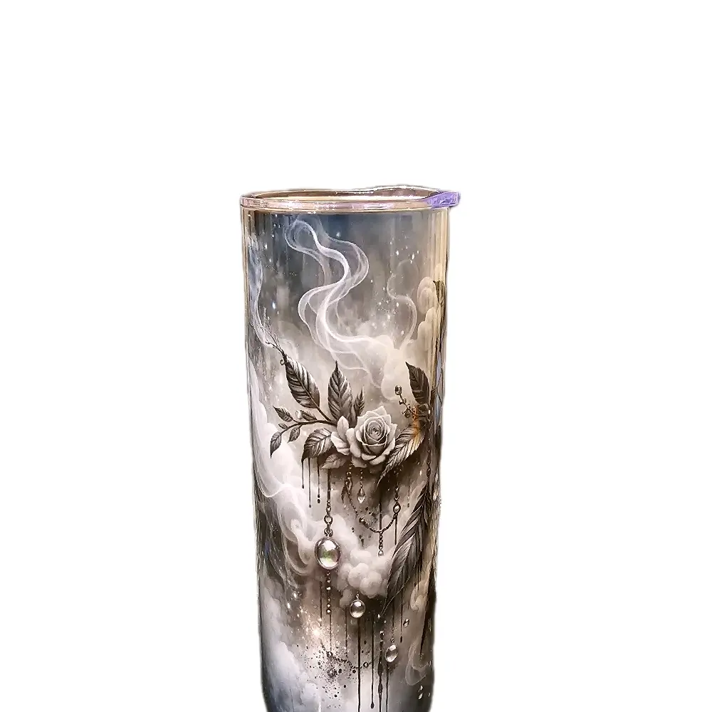 ·This tumbler is ideal for those seeking a unique drinkware option. The combination of the rose design and feather accents makes it stand out. Whether for daily use or special occasions, this tumbler is a charming choice. Enjoy your drinks in style with the Dream Catcher 20oz Tumbler.