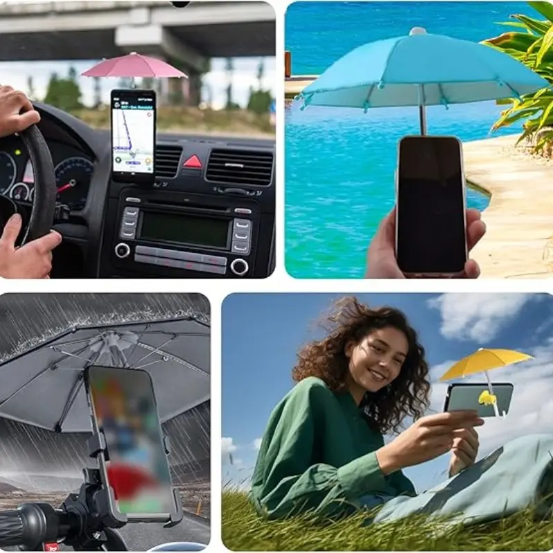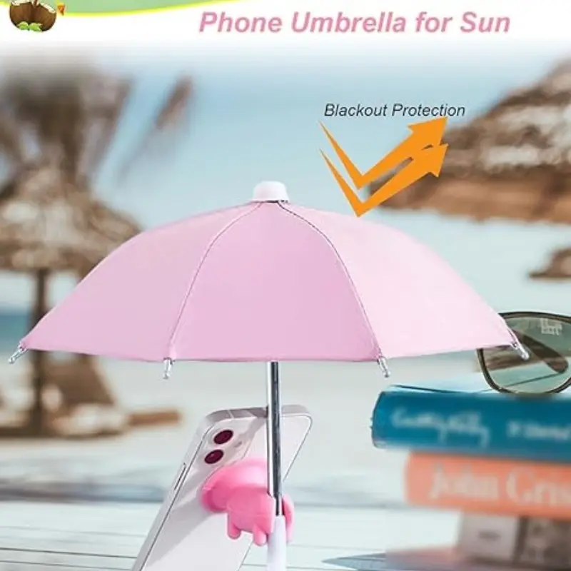 Outdoor Sun Protection Phone Umbrella Stand with Adjustable Suction Cup, Cute Design, Ideal for Beach Travel, Durable Frame, Cute Phone Stand & Sun Protector for Phone/Android Phones