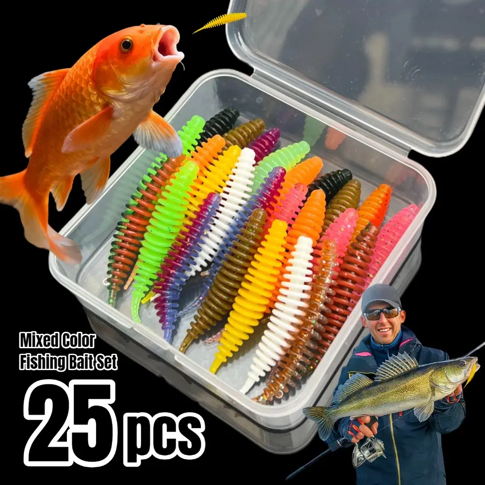 25pcs Mainland Worm Lure Soft Bait Fishing Bait for Carp and Black Bass Artificial Bait 1.81inch/ 2.48inch