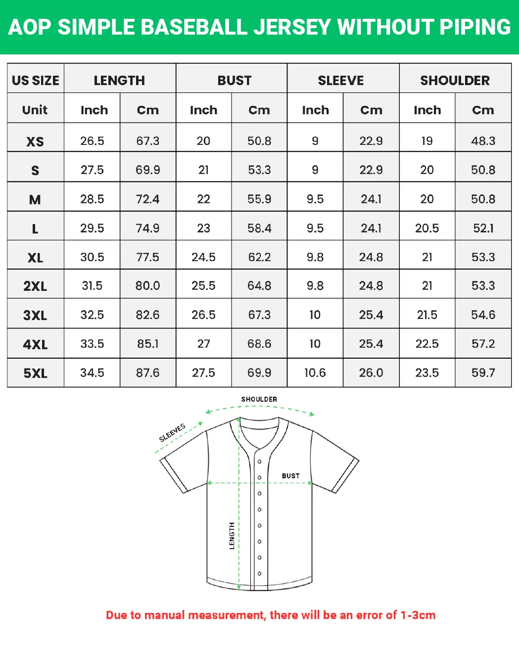 ·Sizes: S to 5XL (8 sizes) – Available in a broad unisex size range from XS to XL, making it easy to fit a variety of customers and body types with minimal complexity.