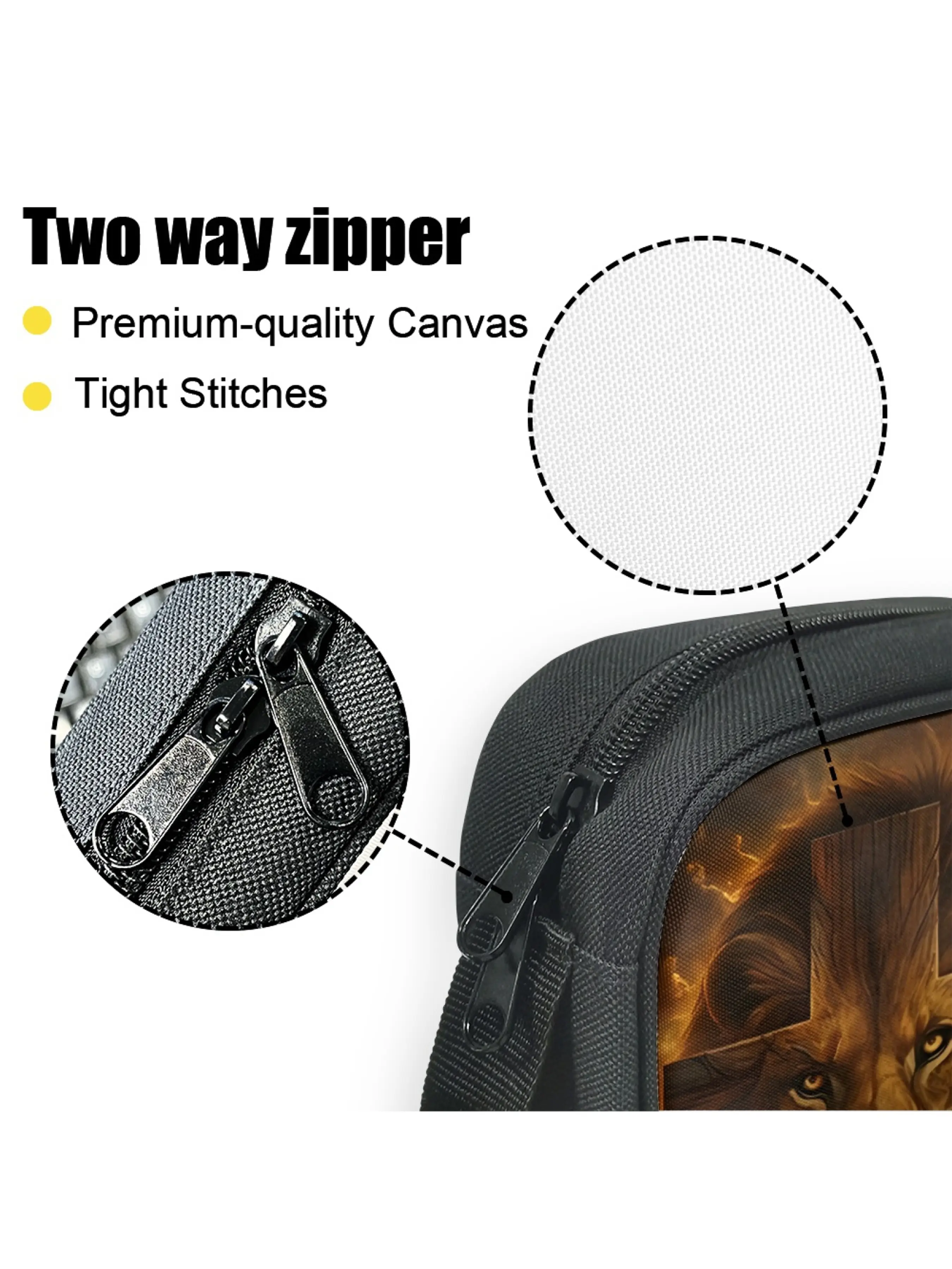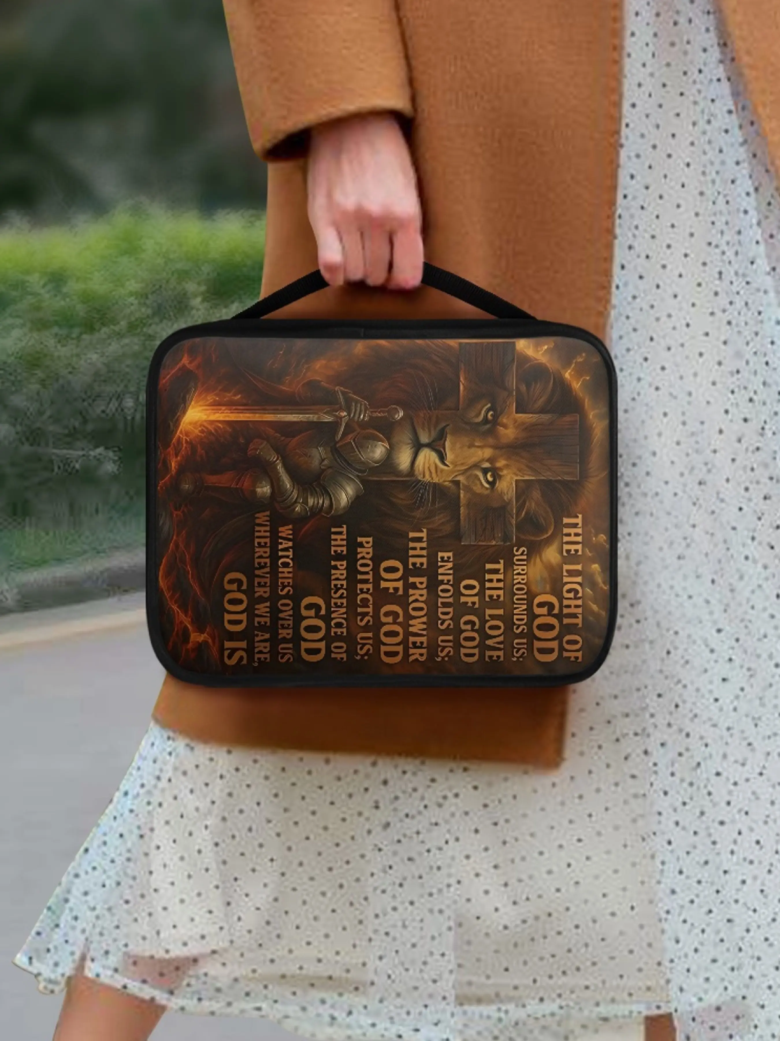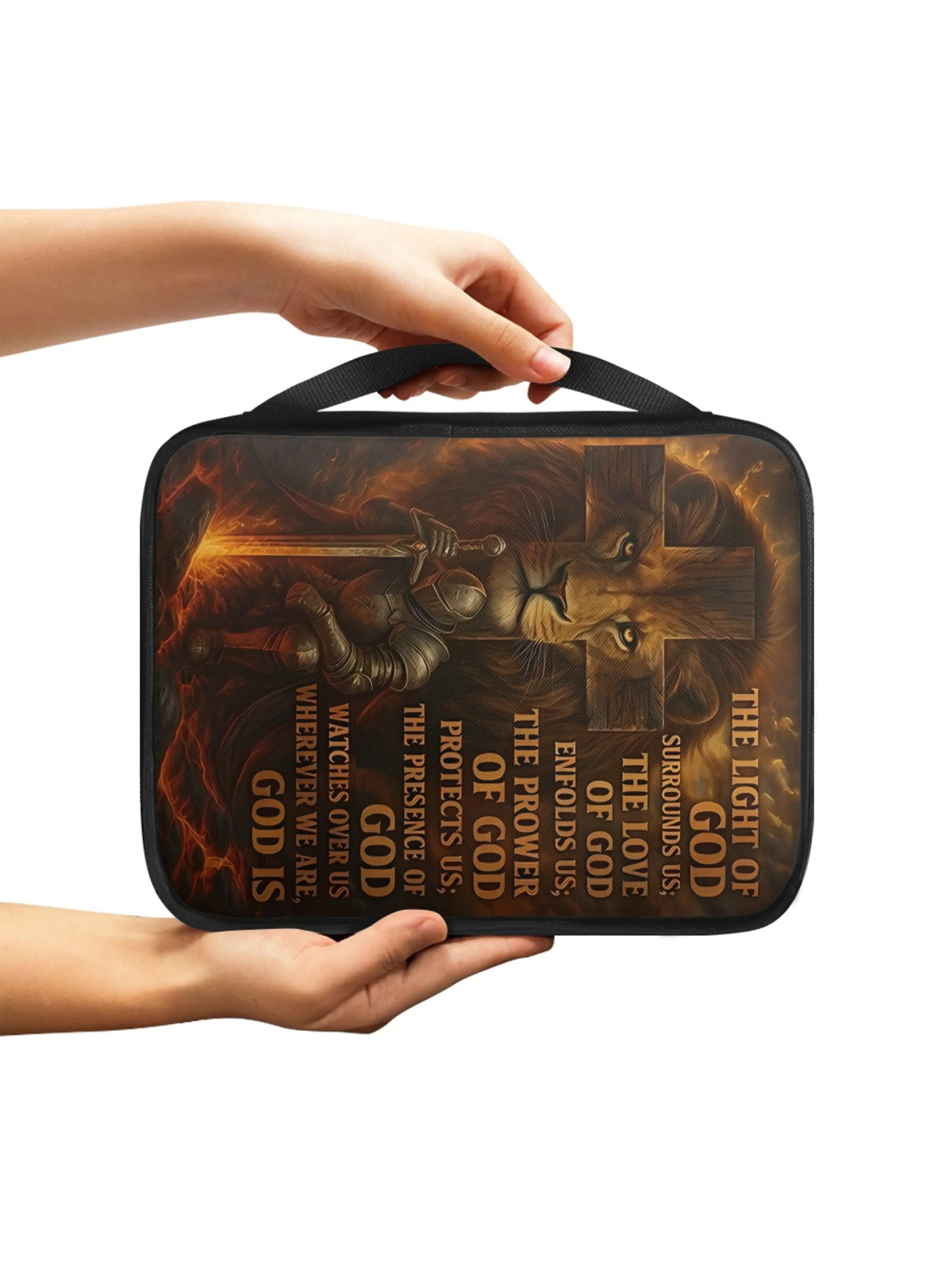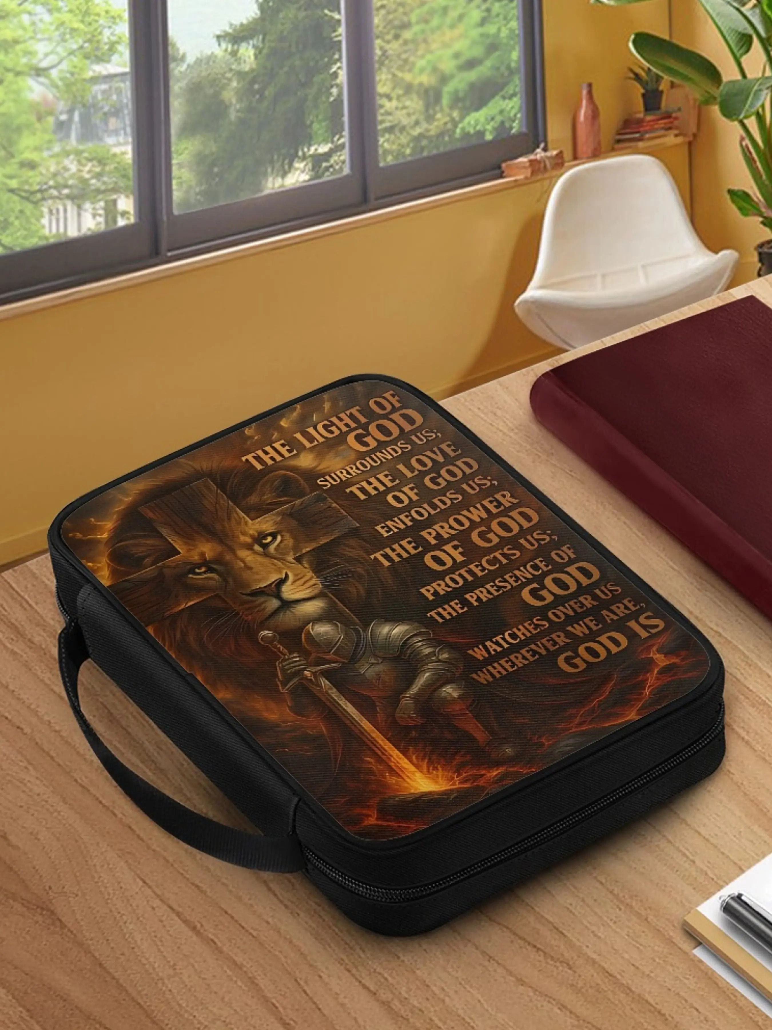 Printed God's Equipment Lion Cross Light Pattern Bible Cover Portable Book Box Church Bag with Handle and Zipper Pocket Perfect Gift