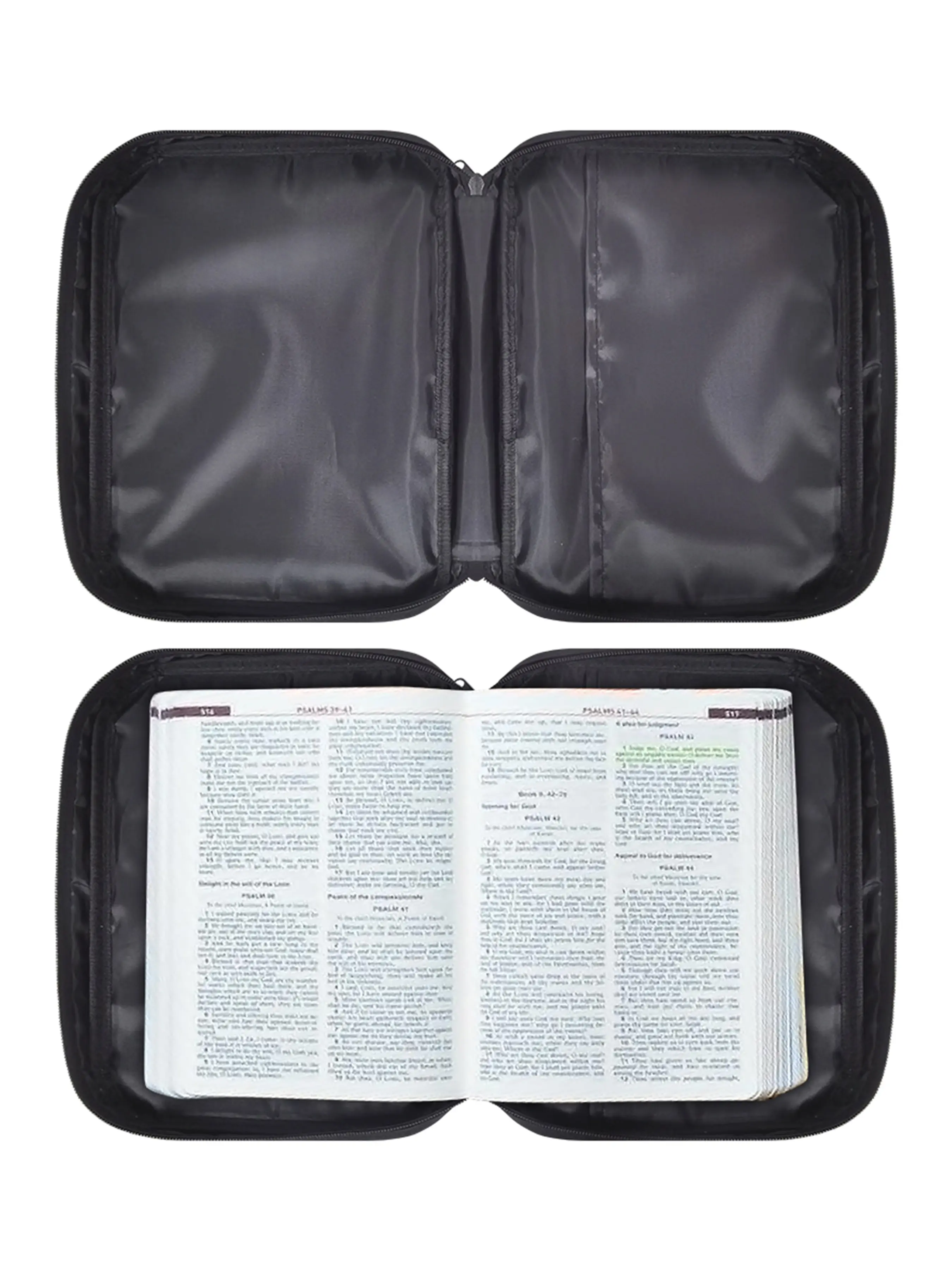 Printed Christian Faux Leather Prayer Text Bible Cover, Portable Book Box Church Bag, Bible Protection with Handle and Zipper Pocket, Book Accessories