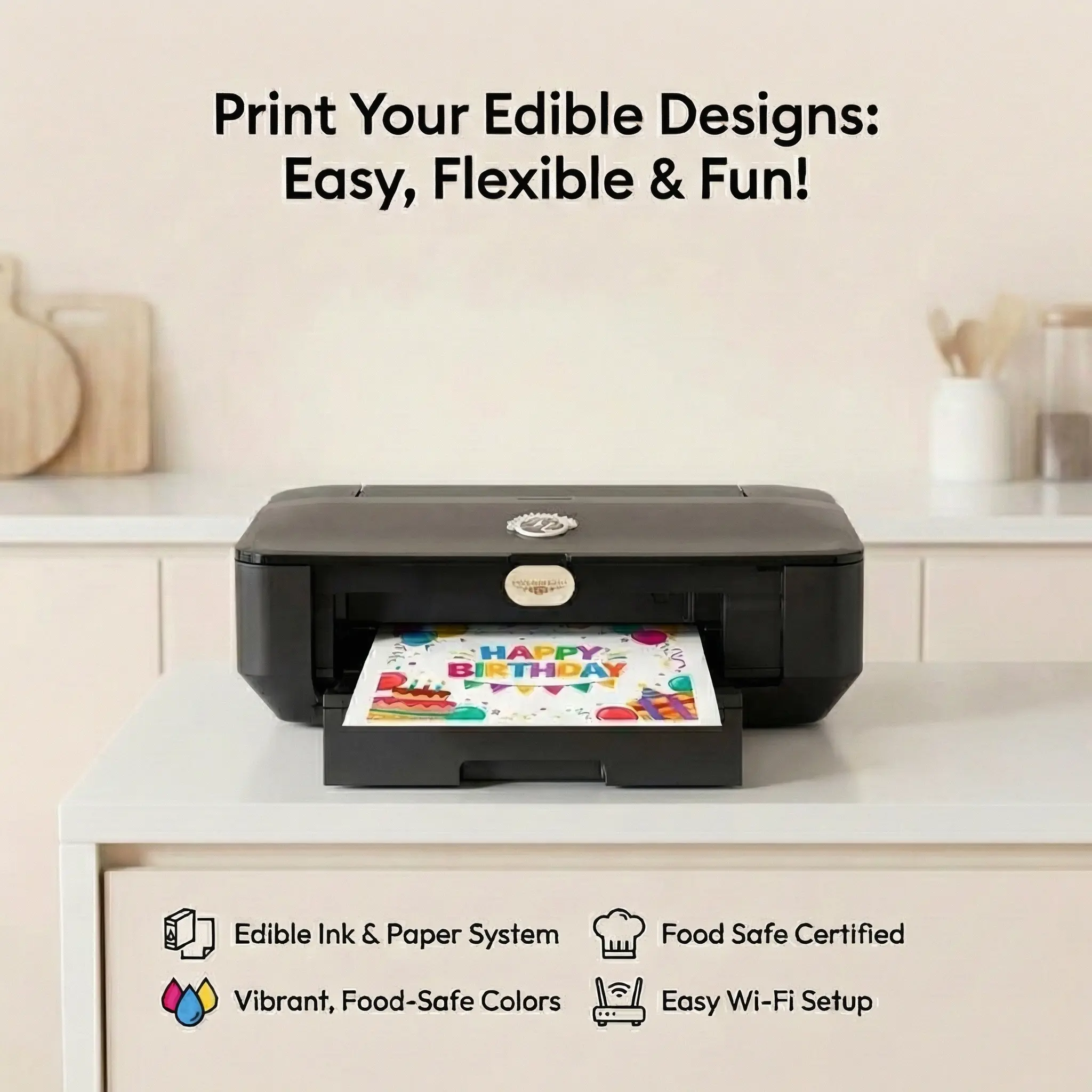 ·Versatile: Perfect for cakes, cupcakes, cookies, and more! Prints up to Letter/Legal size.