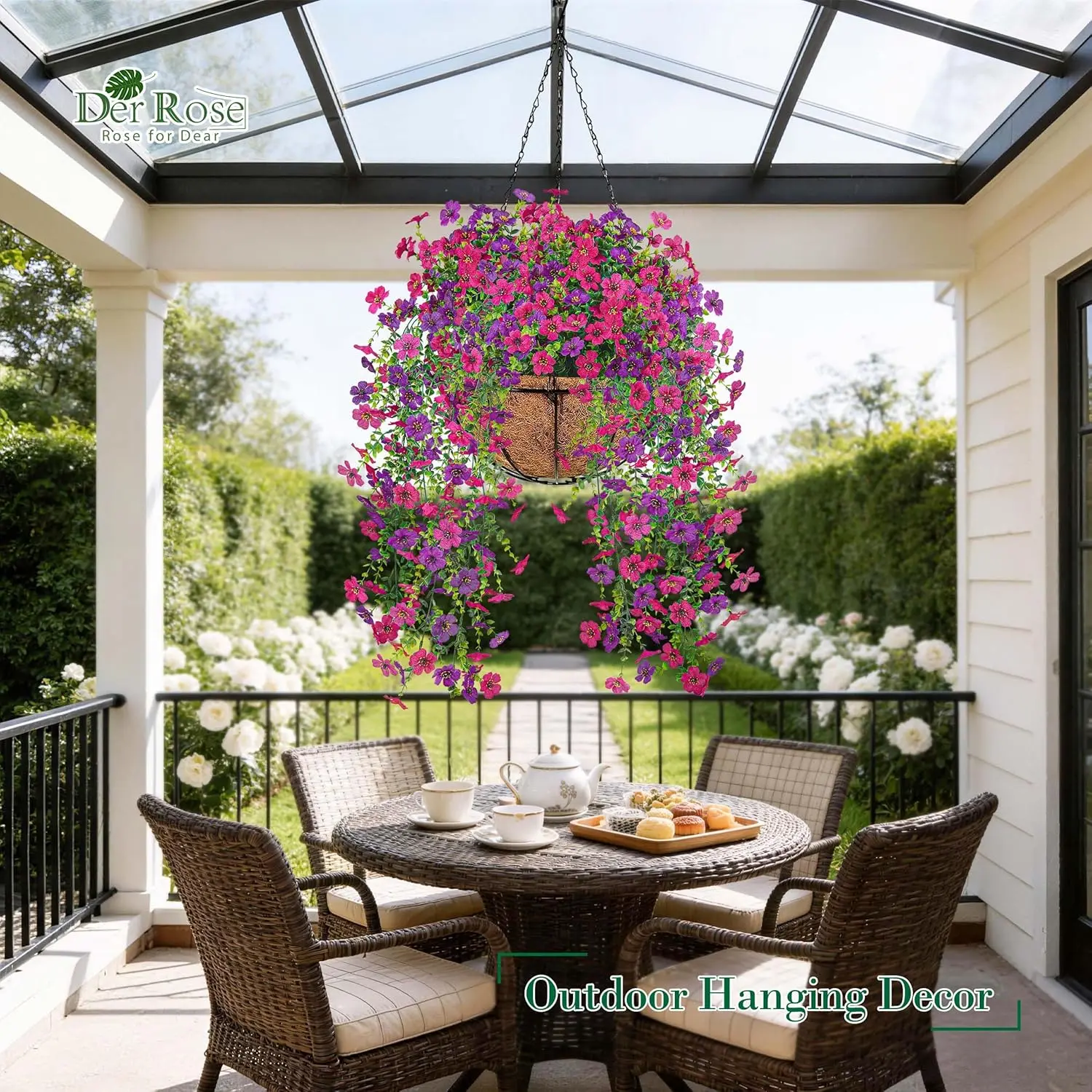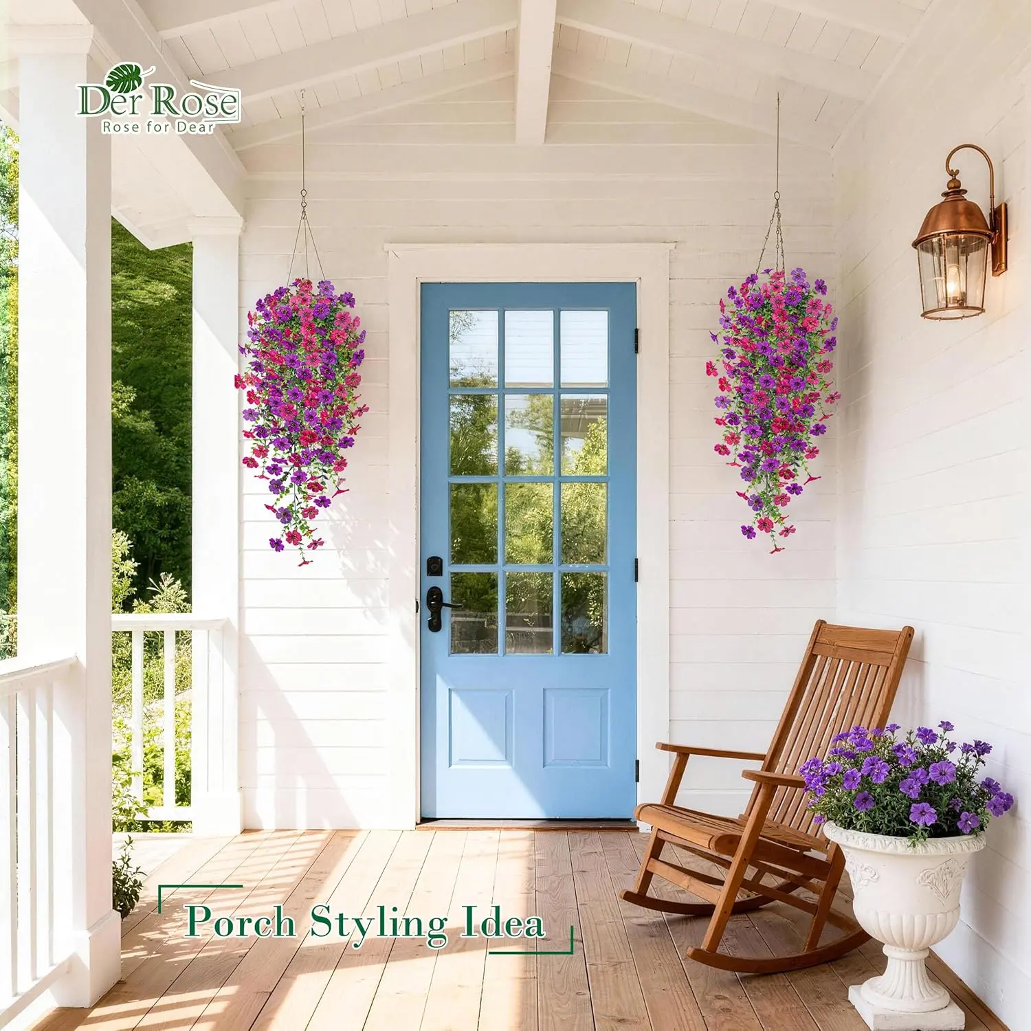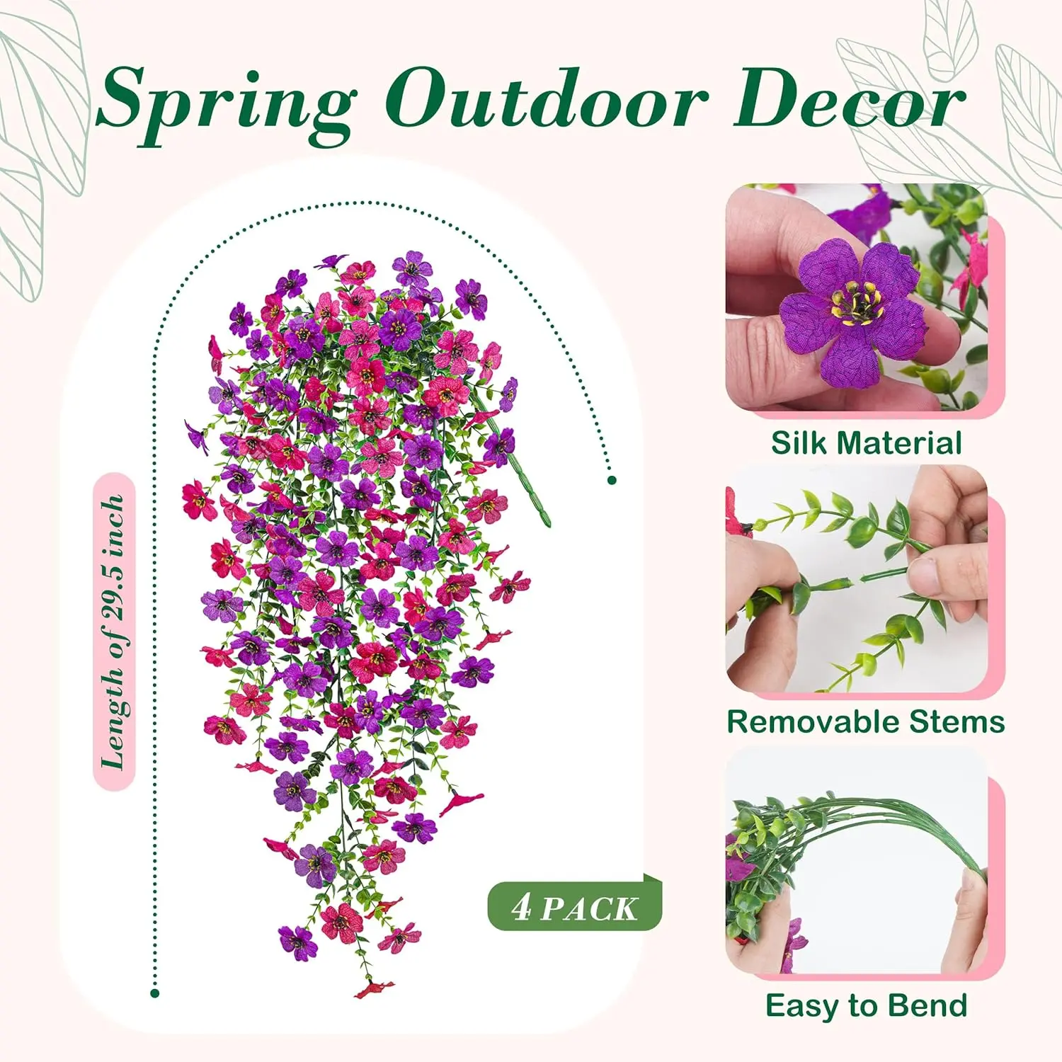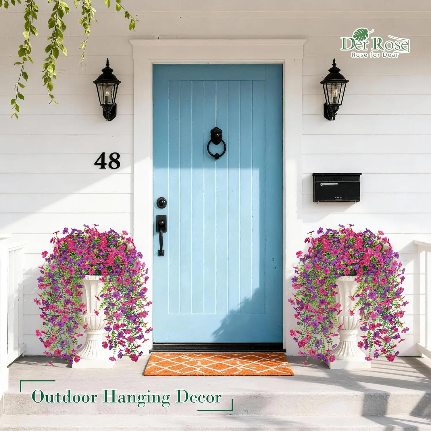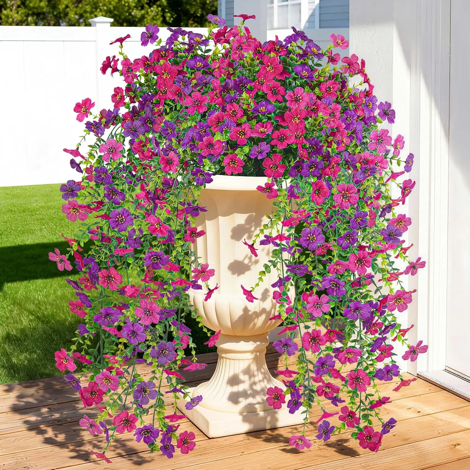 ·Bright Outdoor Accent: These artificial flowers for outdoors feature vivid purple and pink blooms with a natural trailing shape, bringing a cheerful touch to porches, patios, gardens, and front door planters while helping outdoor spaces look more inviting