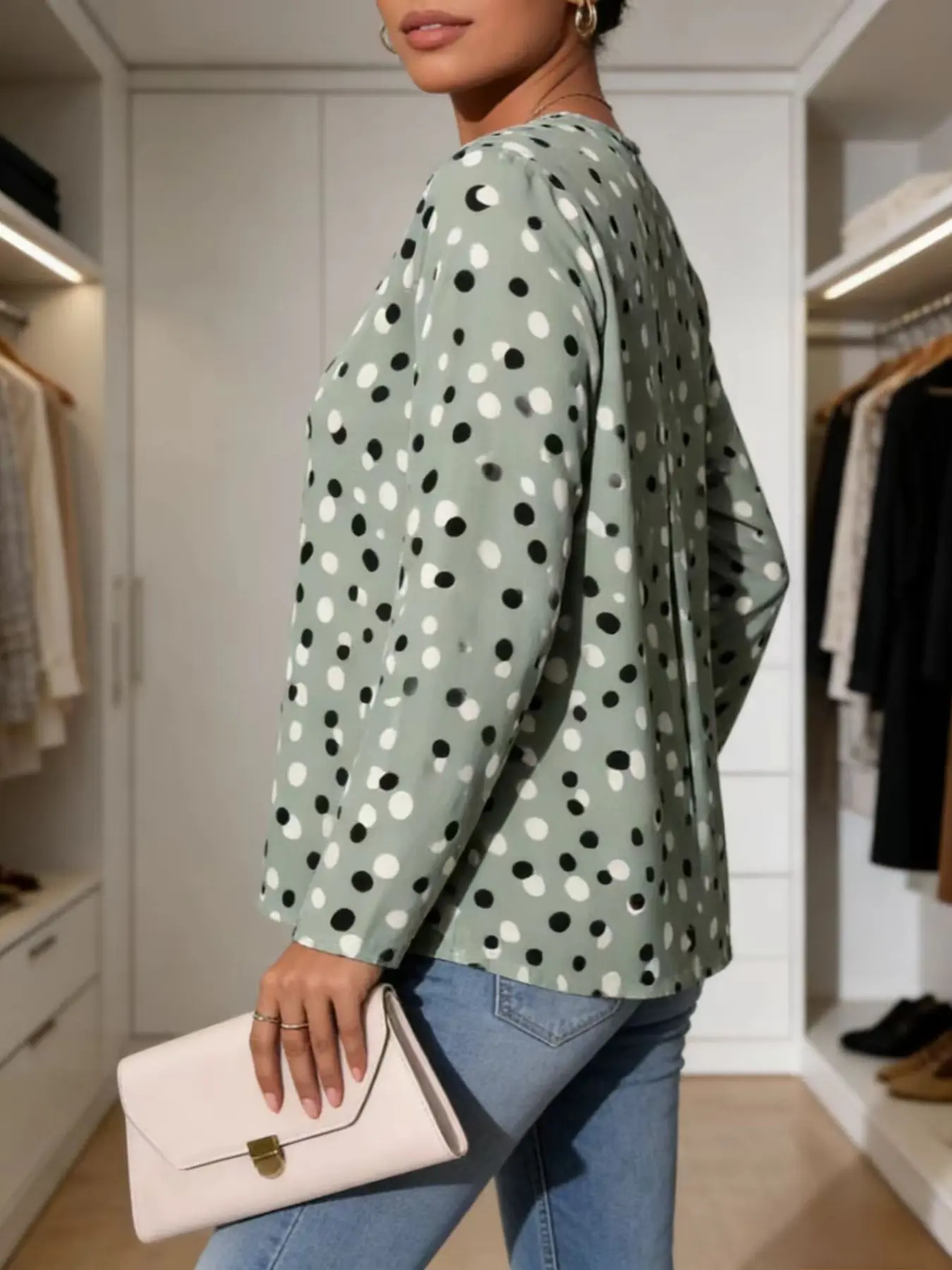 EVALESS Women's Casual Boho Print T Shirts Tops Crew Neck Short Sleeve Polka Dot Slim Fitted Soft Multicolour Tee 2026 Trendy Womenswear Springtok Summer Outfits