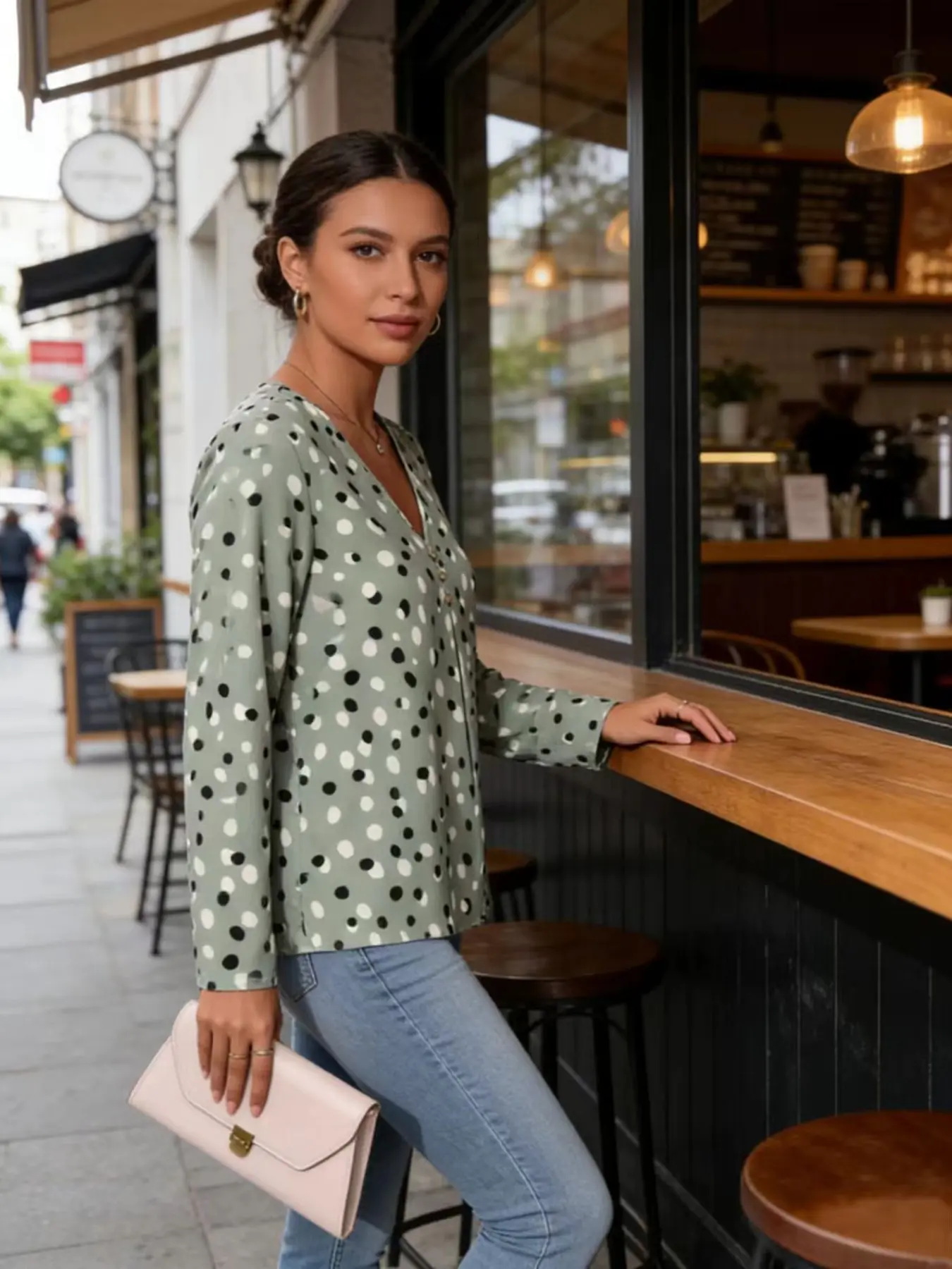 Women's Slim-Fit Long Sleeve V-Neck T-Shirt, Spring & Fall Fashion 2026, New Women's Top, Shoulder Fit, Basic Layering Tee
