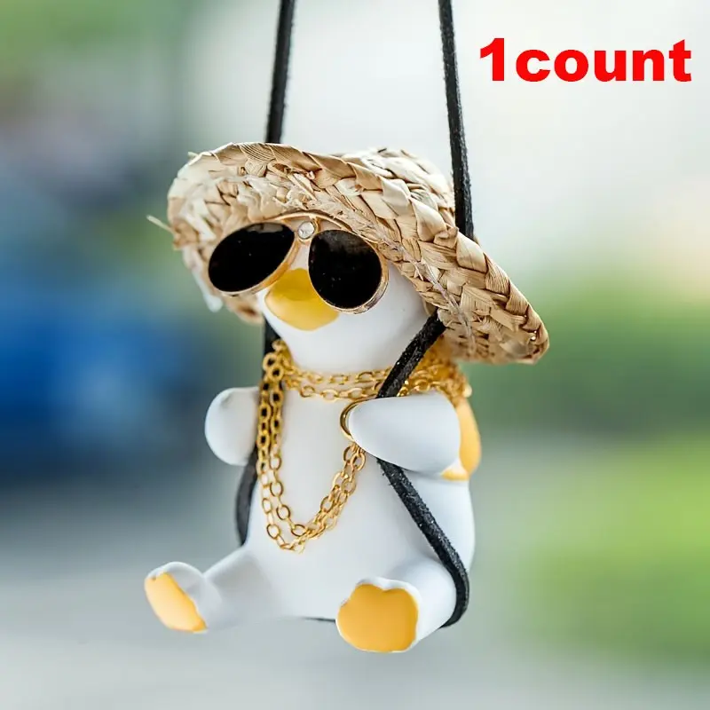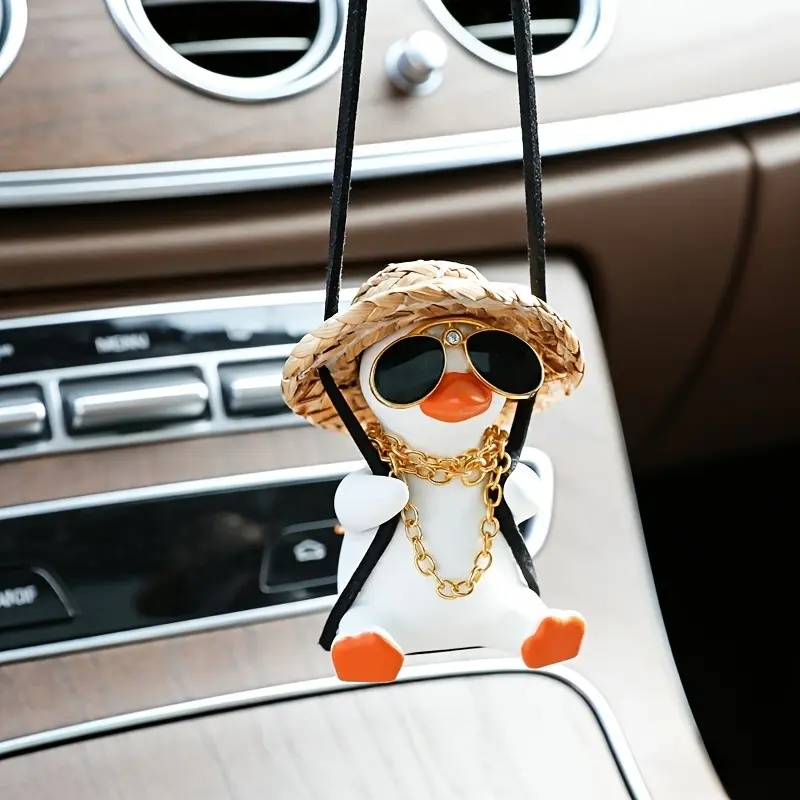 Cute Duck Car Pendant, Expressive Eyes, Rearview Mirror Decoration, Safe Hook, Birthday/valentine Gift for Drivers, Durable Interior Accessory